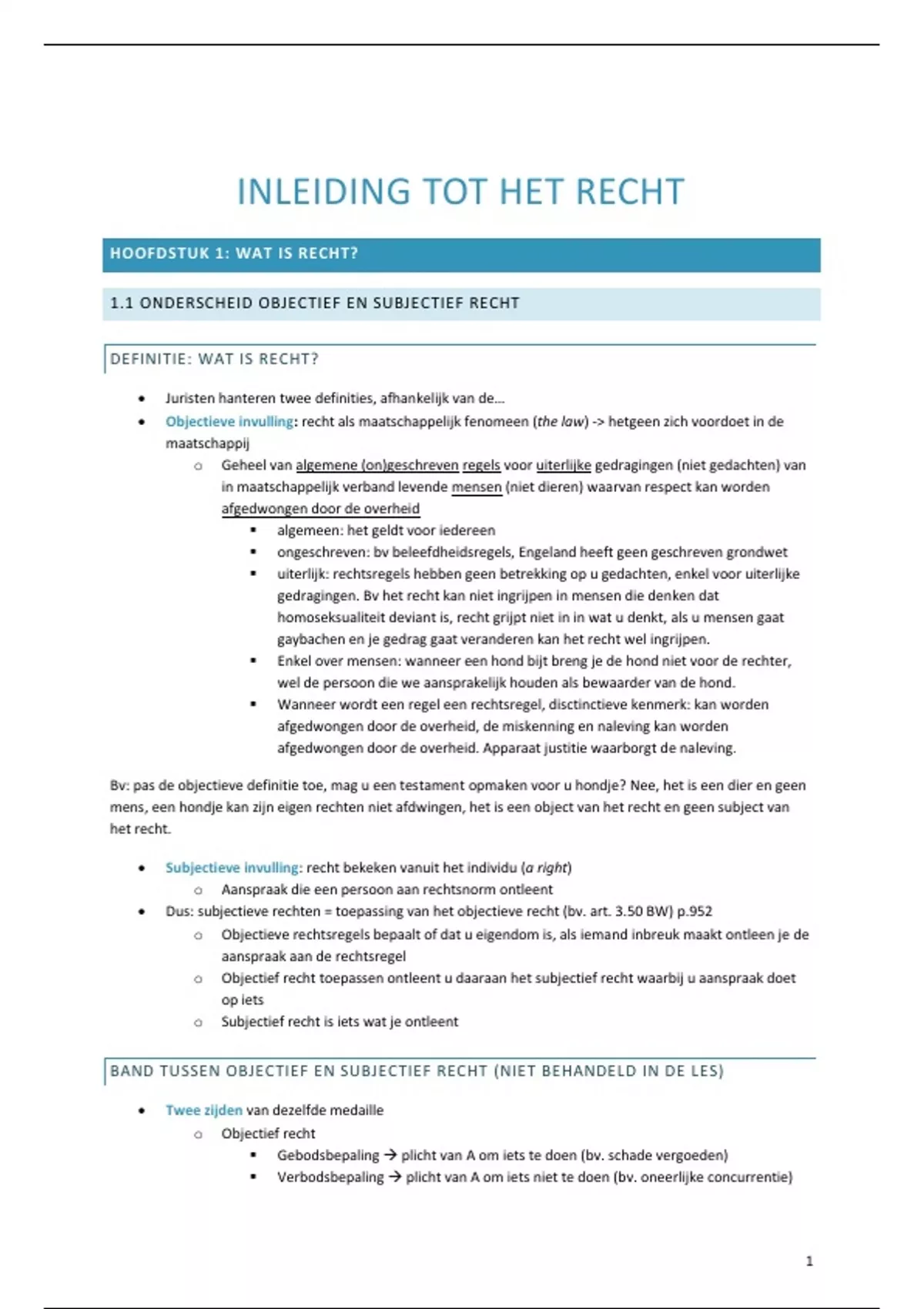 Volledige samenvatting van inleiding tot het recht. Door enkel deze samenvatting te leren ben ik in 1e zit geslaagd! Deze samenvatting bevat slides + notities. Deze samenvatting is heel overzichtelijk en studeer klaar!