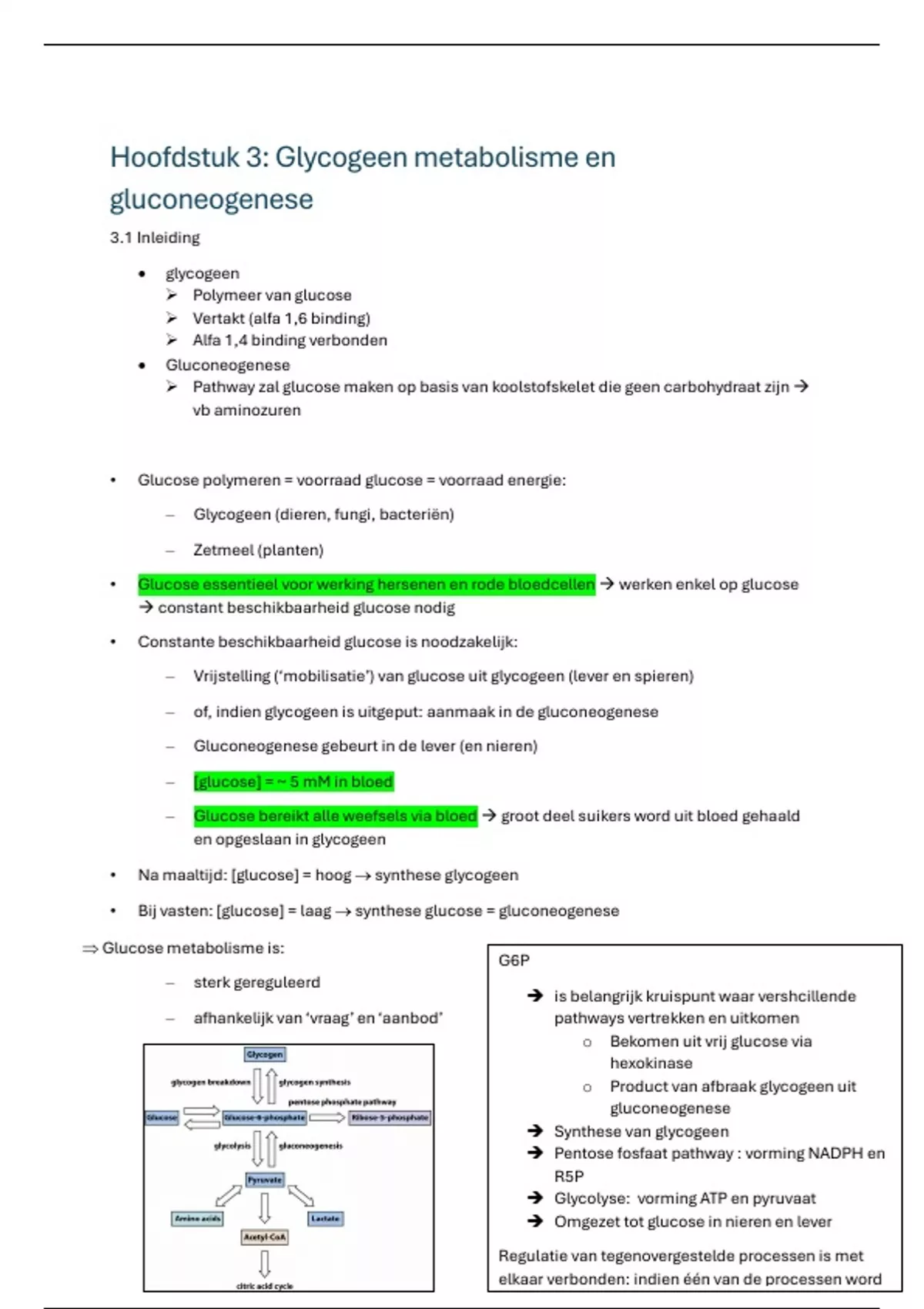 • Na maaltijd: [glucose] = hoog → synthese glycogeen