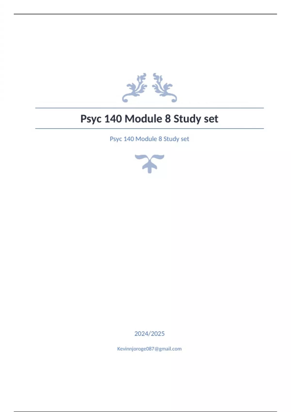 Psyc 140 Module 8 Study set questions and answers verified 2024