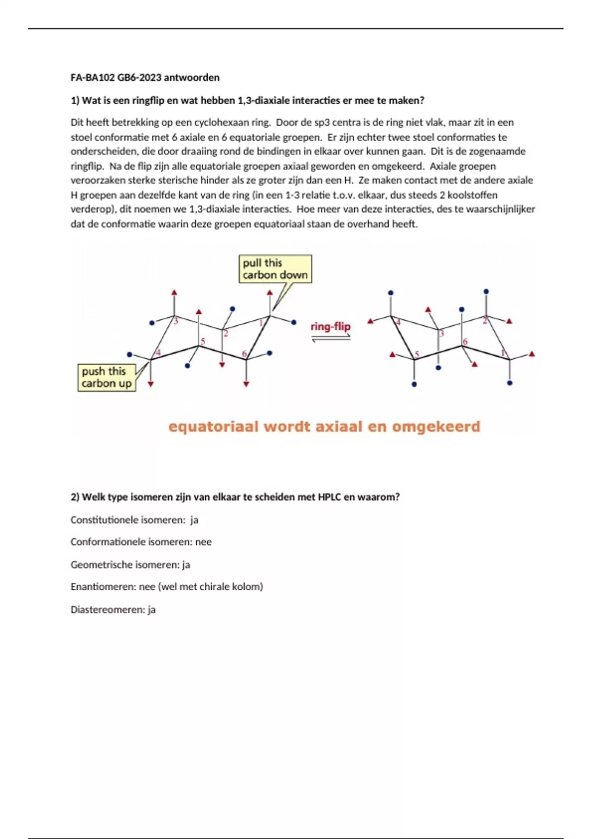 1) Wat is een ringflip en wat hebben 1,3-diaxiale interacties er mee te maken?