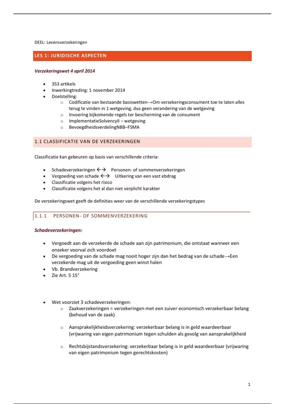 1.1 CLASSIFICATIE VAN DE VERZEKERINGEN