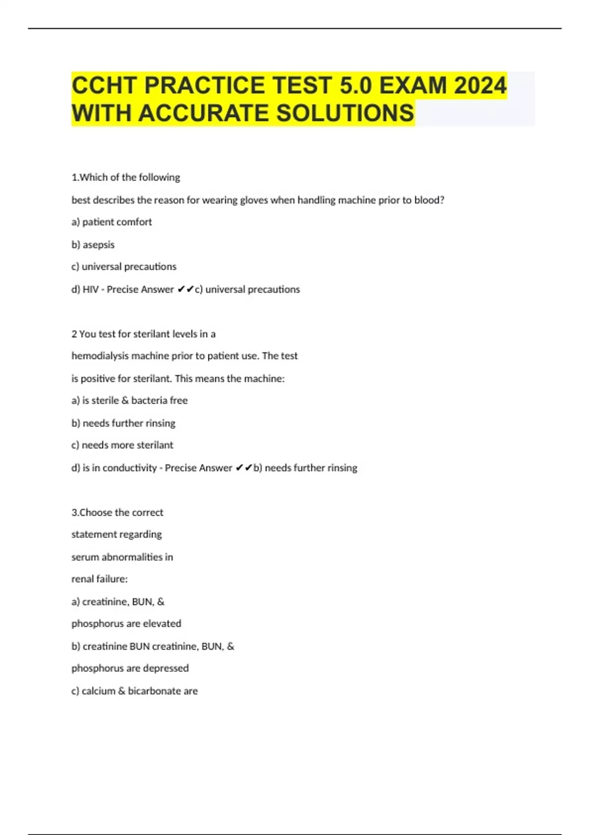 CCHT PRACTICE TEST 5.0 EXAM 2024 WITH ACCURATE SOLUTIONS
