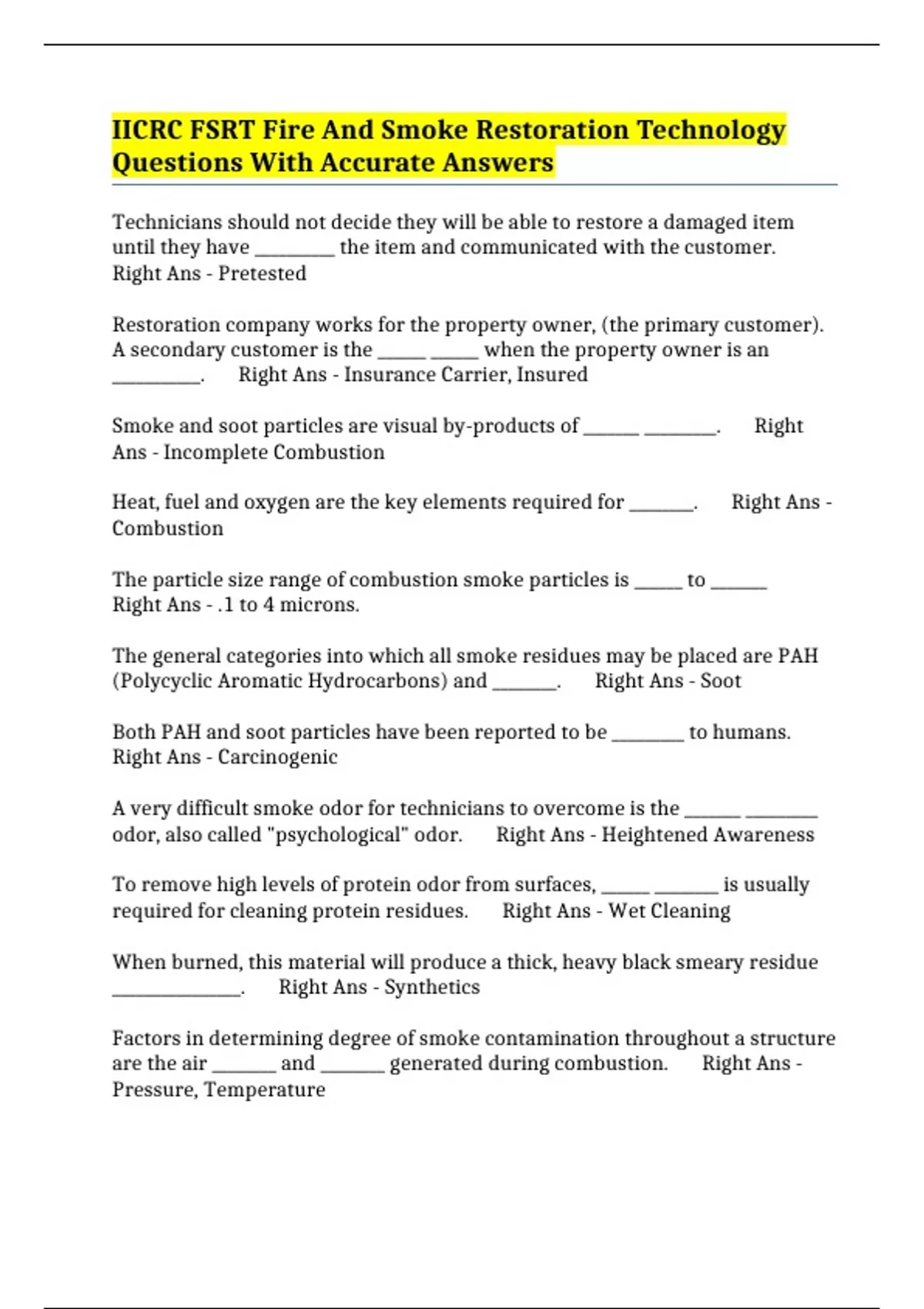 are the air ________ and ________ generated during combustion. Right Ans - Pressure, Temperature The severity of soot contamination increases with a _________ of oxygen and decreases when a ___________ _____________ of oxygen is present during the fire. Right Ans - Lack, Greater Quantity
