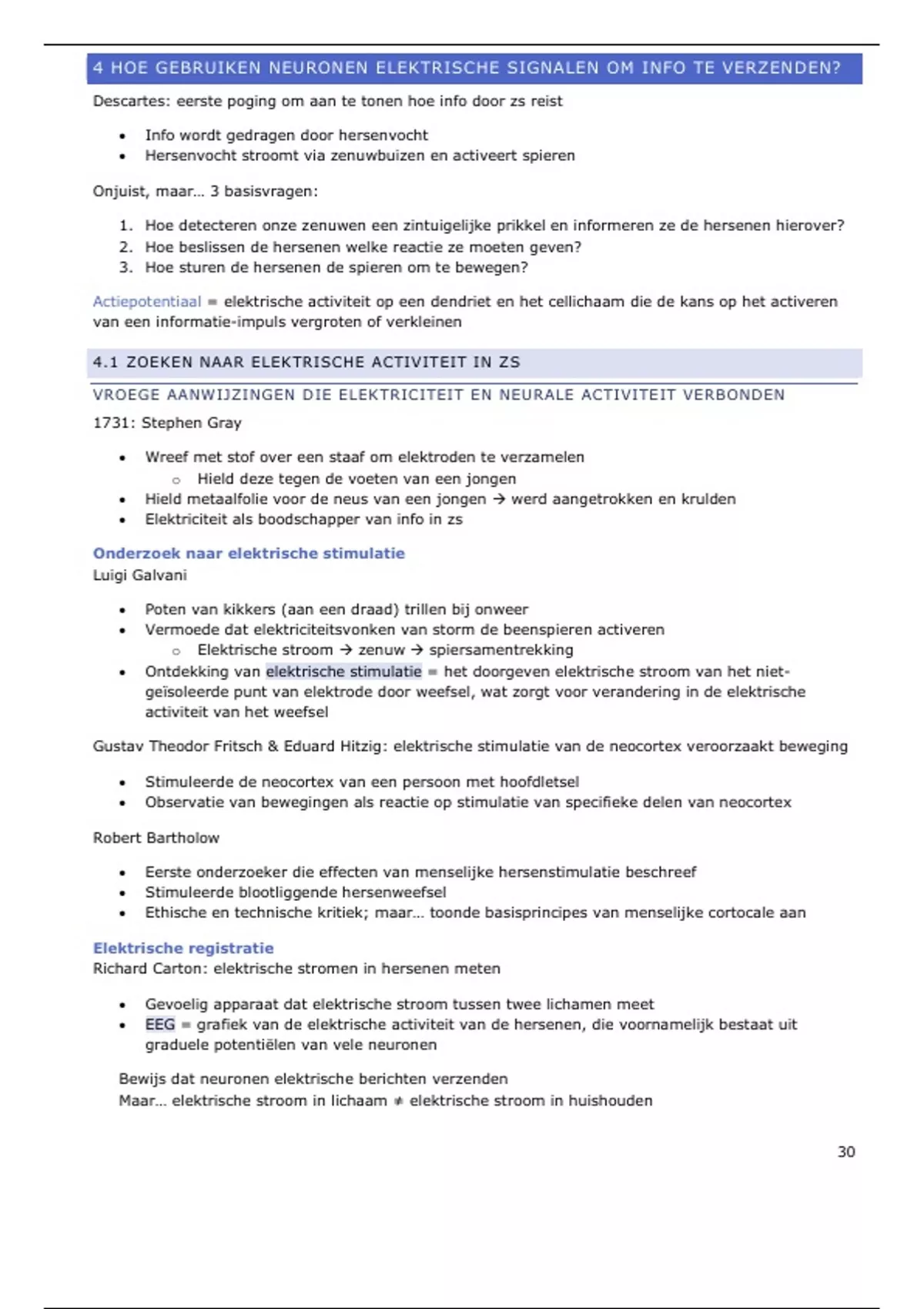 Ontdekking van elektrische stimulatie = het doorgeven elektrische stroom van het niet-