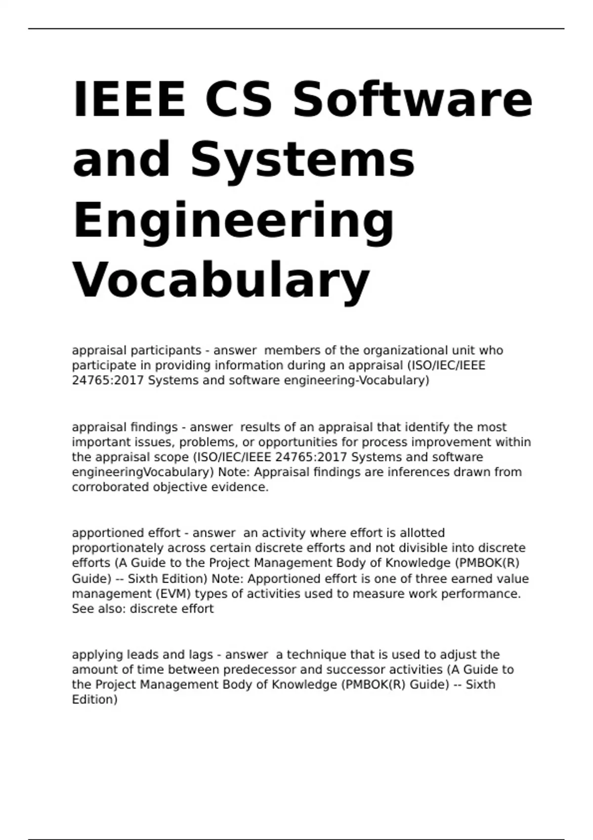 IEEE CS Software and Systems Engineering Vocabulary