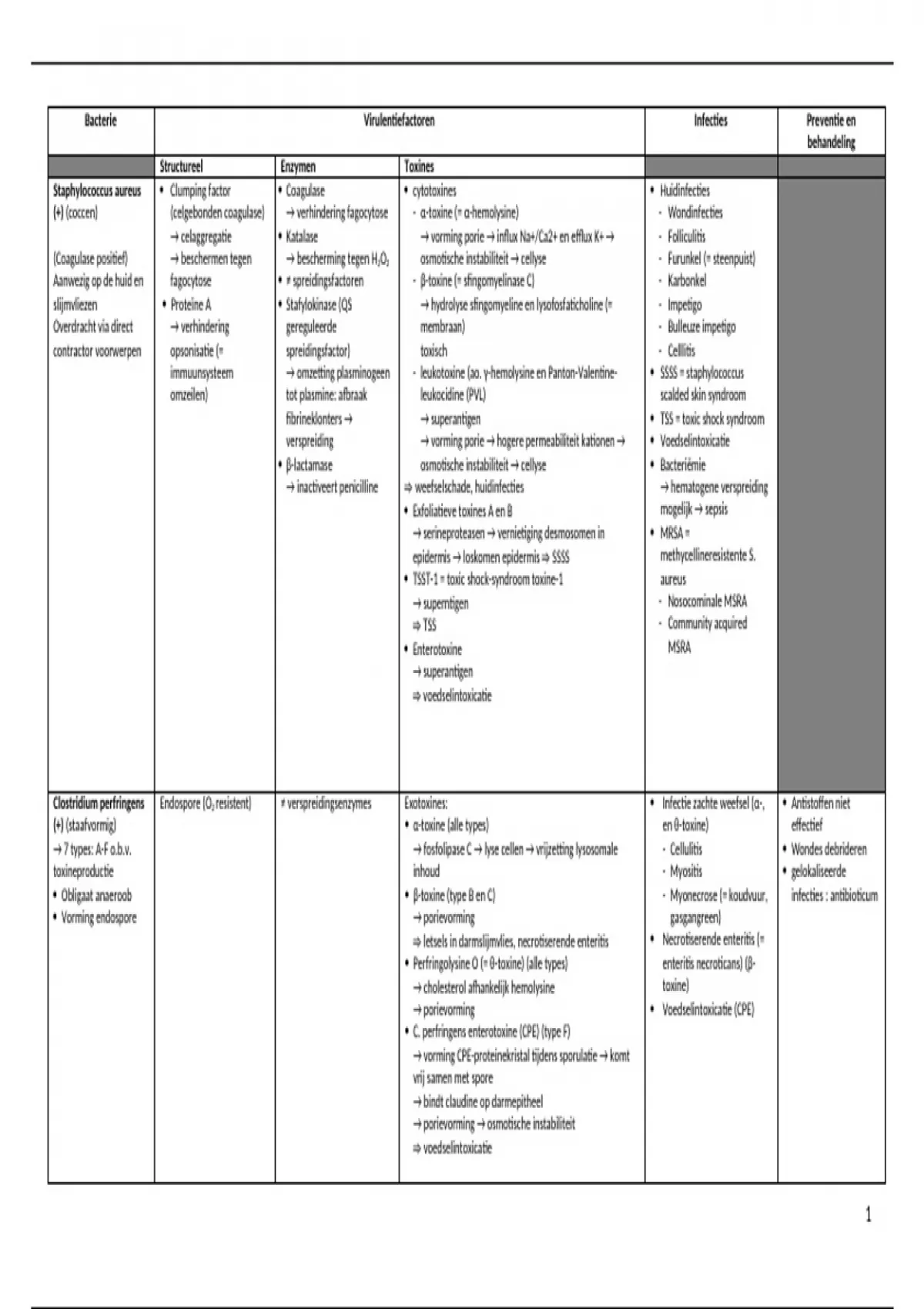 Dit is een tabel die alle bacterën en hun virulentiefactoren weergeeft.