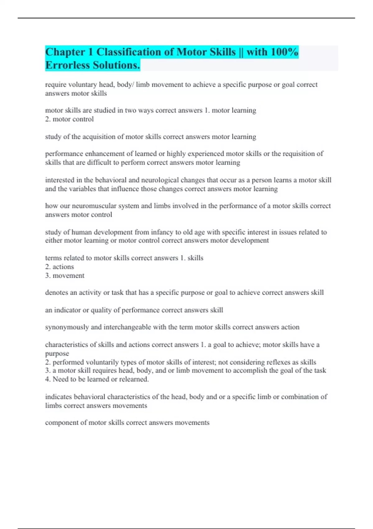 Chapter 1 Classification of Motor Skills || with 100% Errorless Solutions.