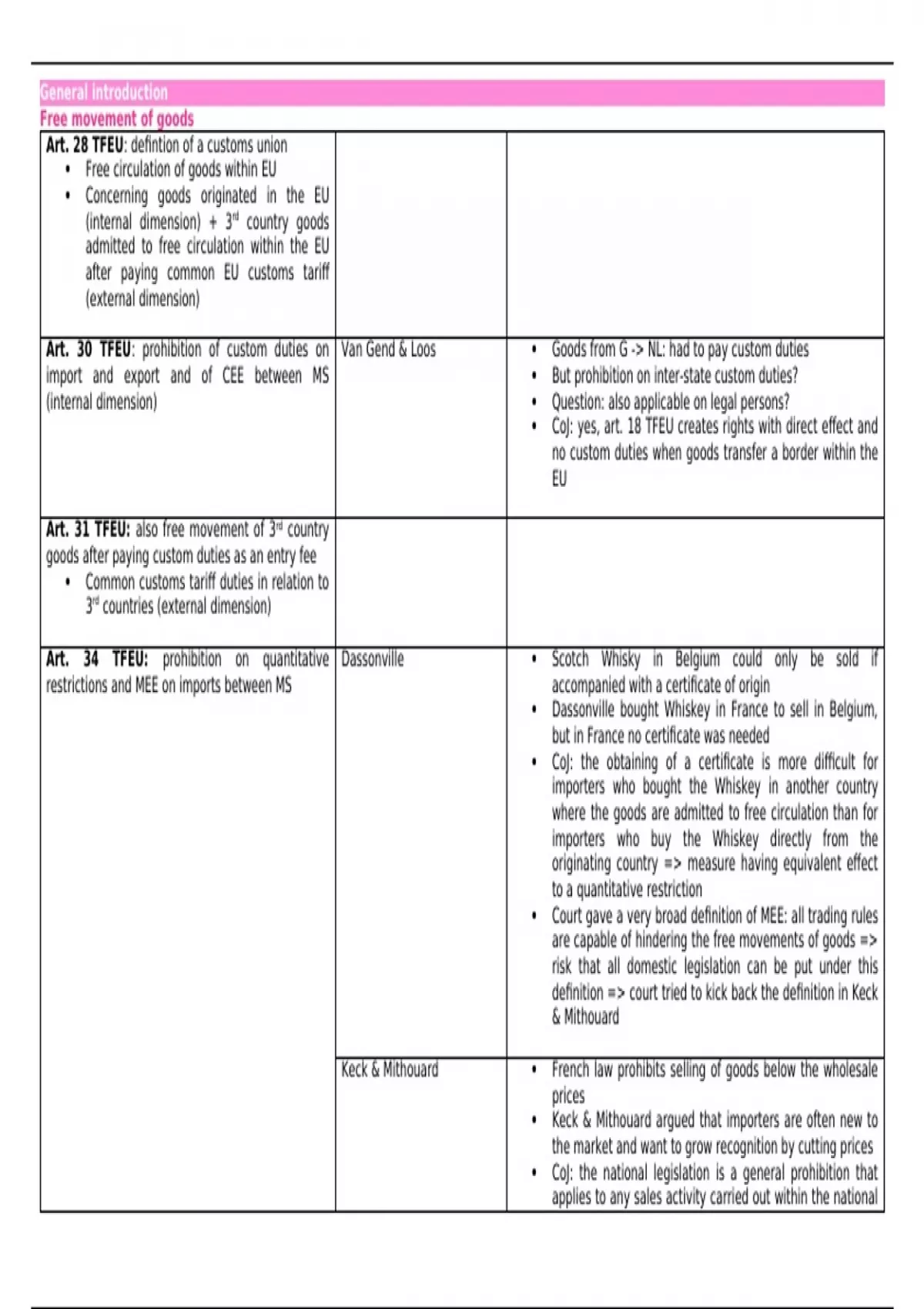 Art. 30 TFEU: prohibition of custom duties on Van Gend & Loos Goods from G -> NL: had to pay custom duties