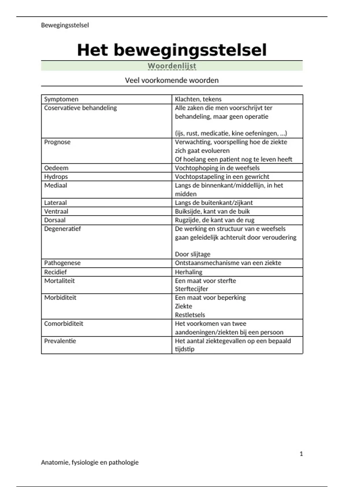 Anatomie, fysiologie en pathologie Bewegingsstelsel Plaatsbeschrijving