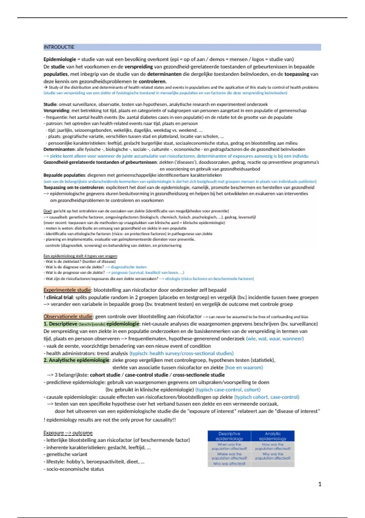 Epidemiologie = studie van wat een bevolking overkomt (epi = op of aan / demos = mensen / logos = studie van)