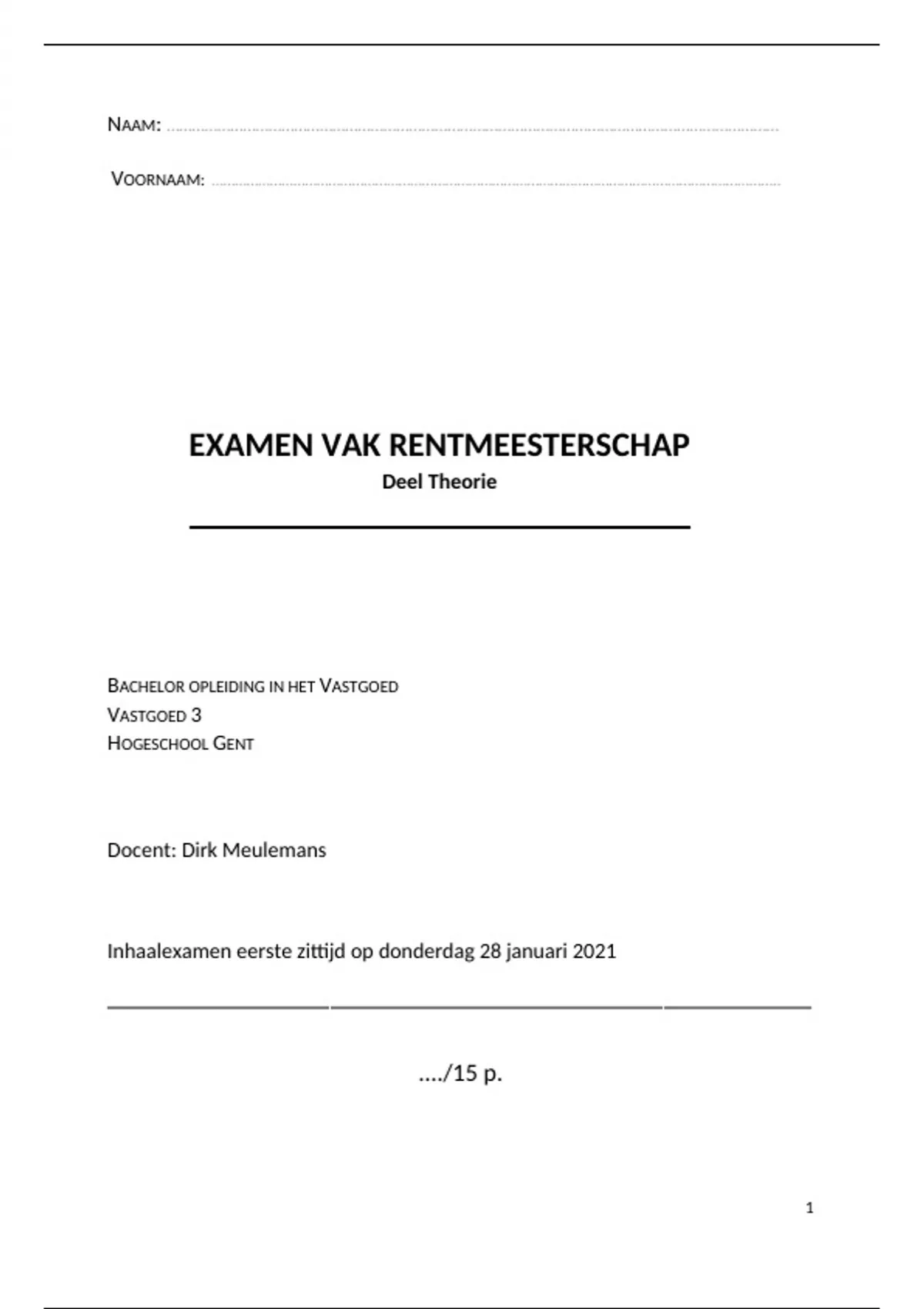 EXAMEN VAK RENTMEESTERSCHAP