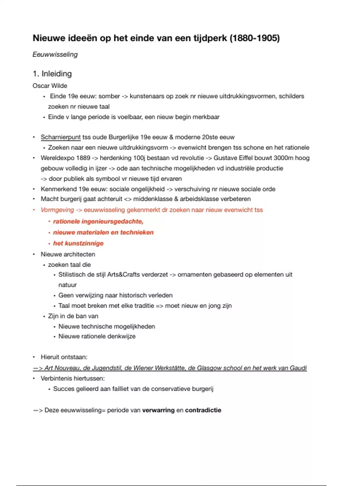 • Vormgeving -> eeuwwisseling gekenmerkt dr zoeken naar nieuw evenwicht tss