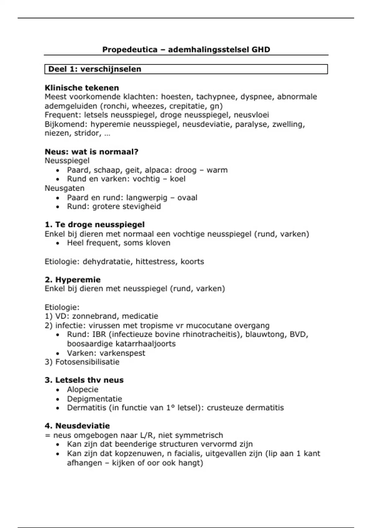 • Opstapeling mucus, kortsen in neusgaten zonder dat er respiratoire