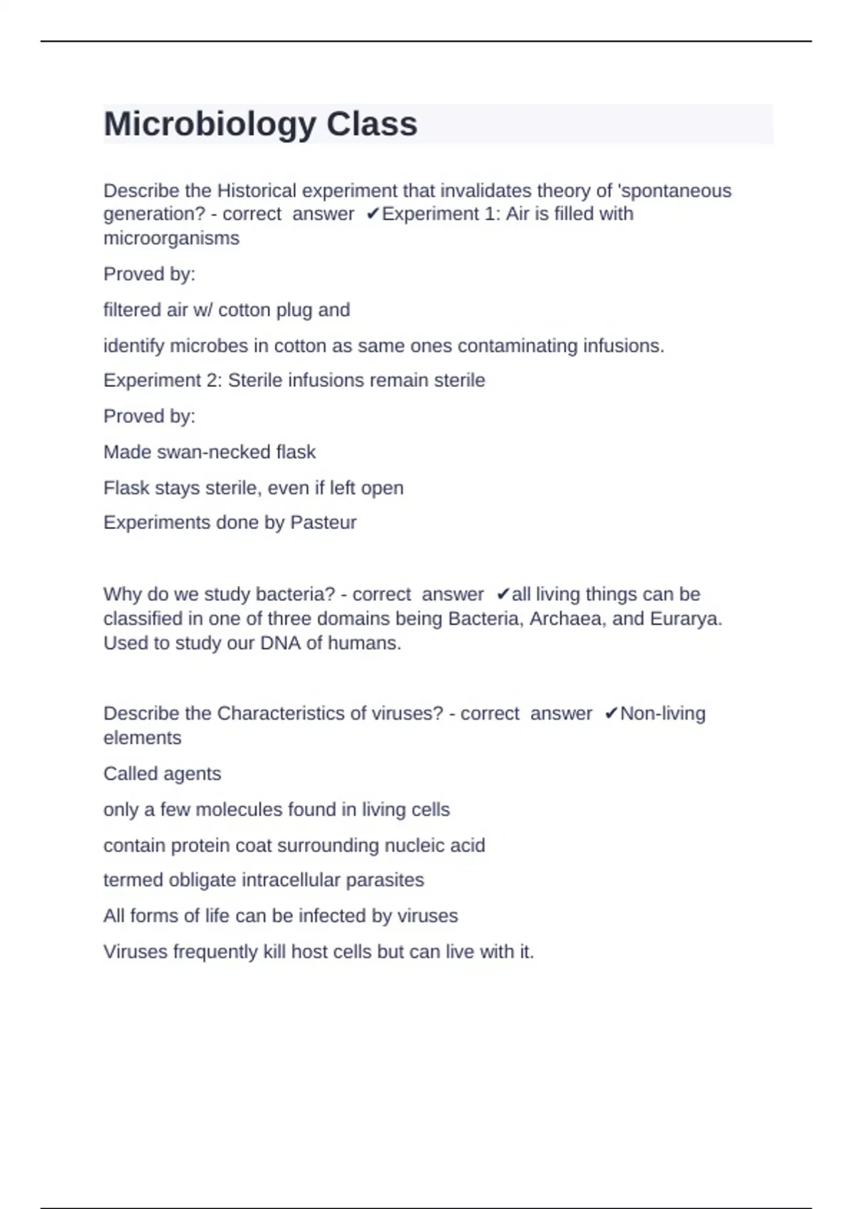 Experiments done by Pasteur