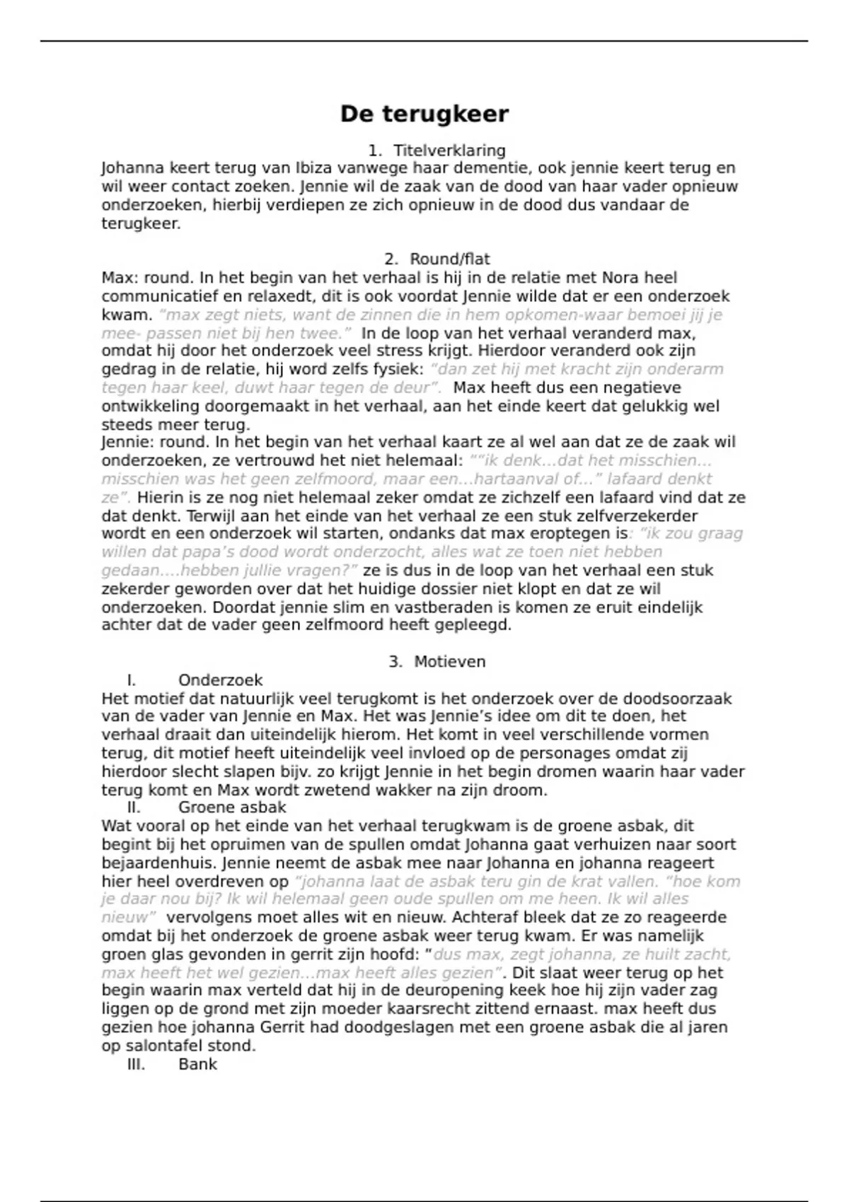 tegen haar keel, duwt haar tegen de deur”. Max heeft dus een negatieve