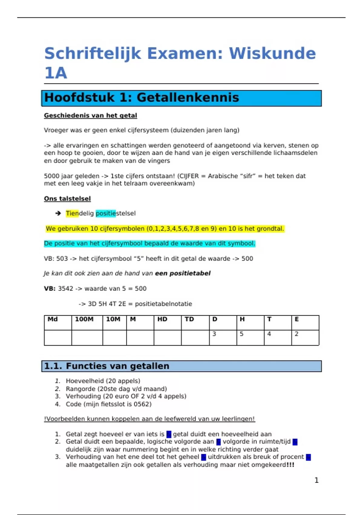 Deze samenvatting vormt een visuele combinatie van informatie uit de lessen, PowerPoint en het boek 'Wiskunde Wijs!'. Dit heeft mij makkelijk doorheen het examen geholpen! Side note: Ik heb een 14 op 20 behaald.