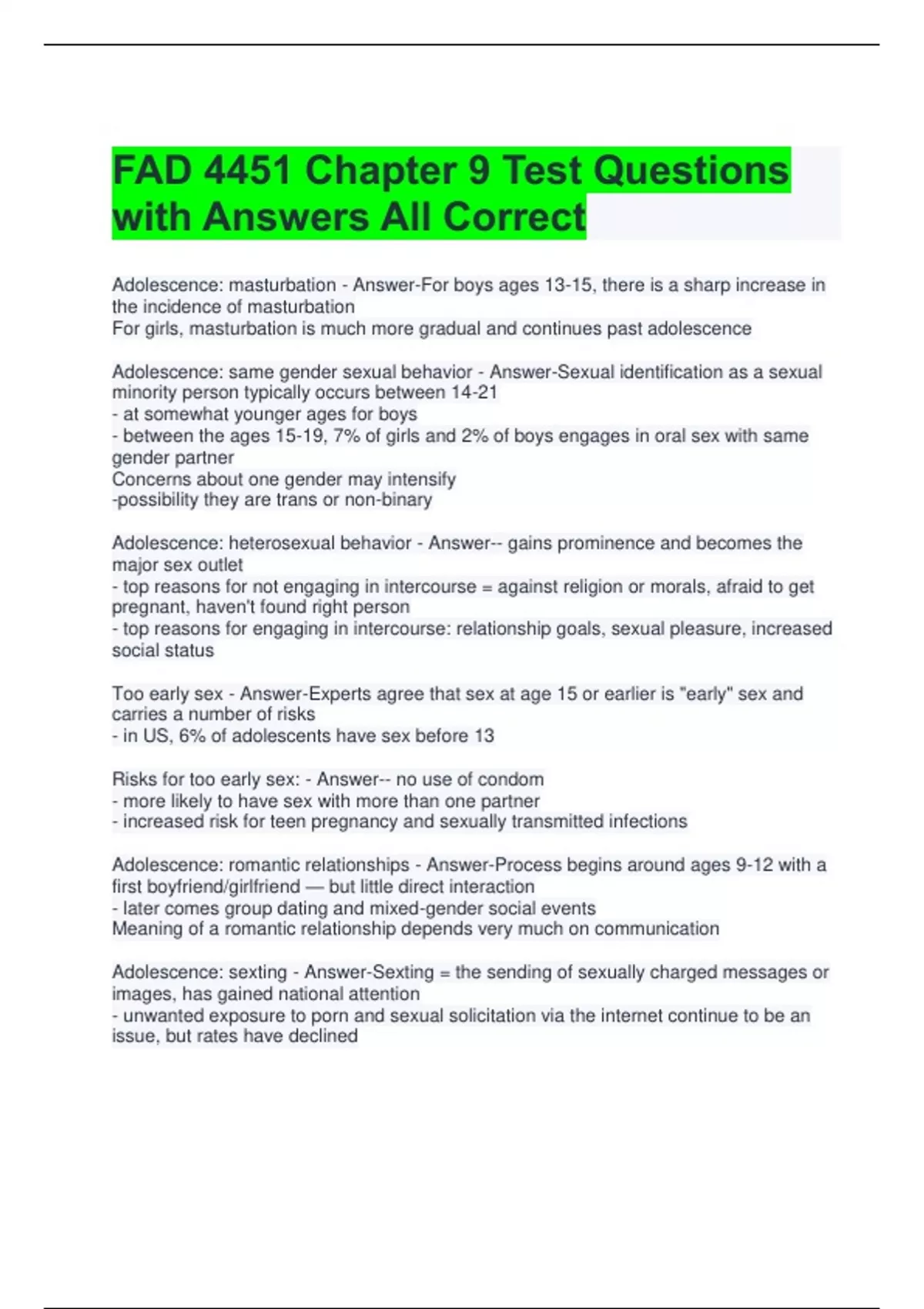 Adolescence: same gender sexual behavior - Answer-Sexual identification as a sexual