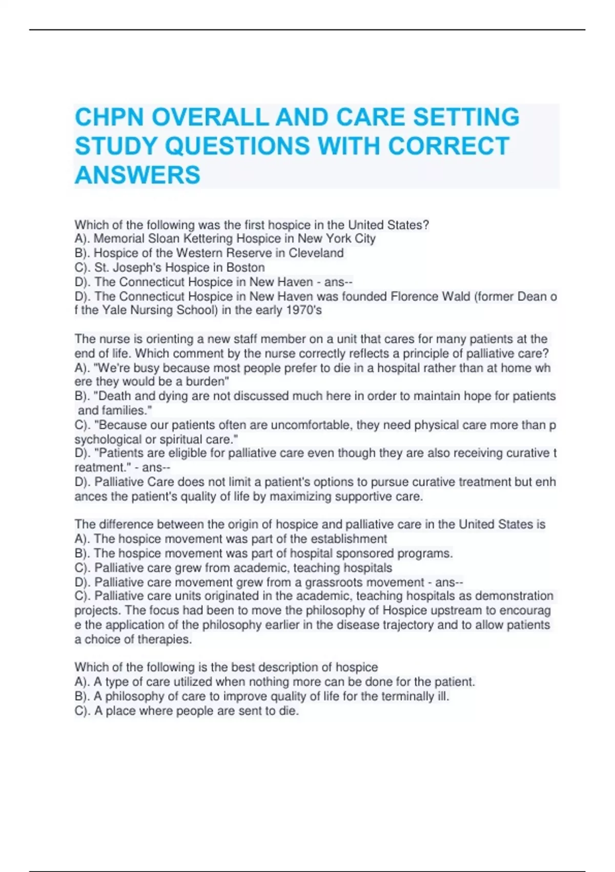 STUDY QUESTIONS WITH CORRECT