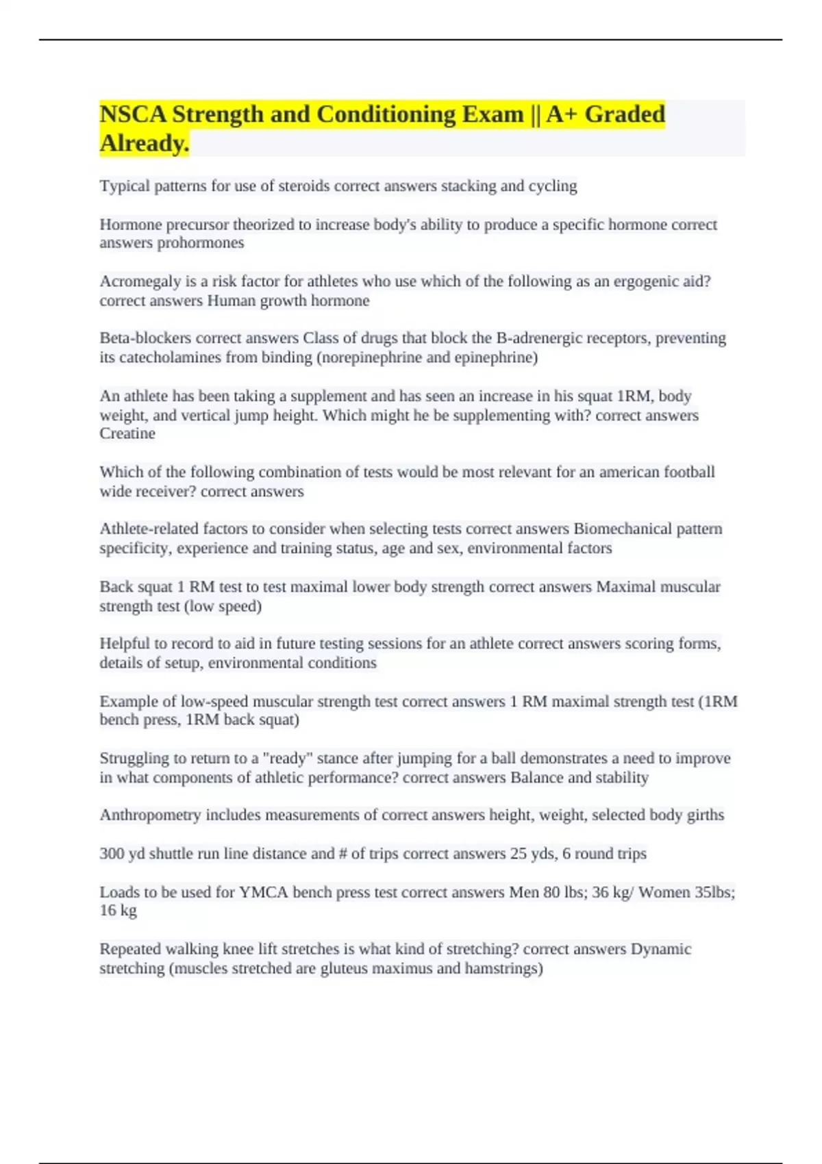 Back squat 1 RM test to test maximal lower body strength correct answers Maximal muscular