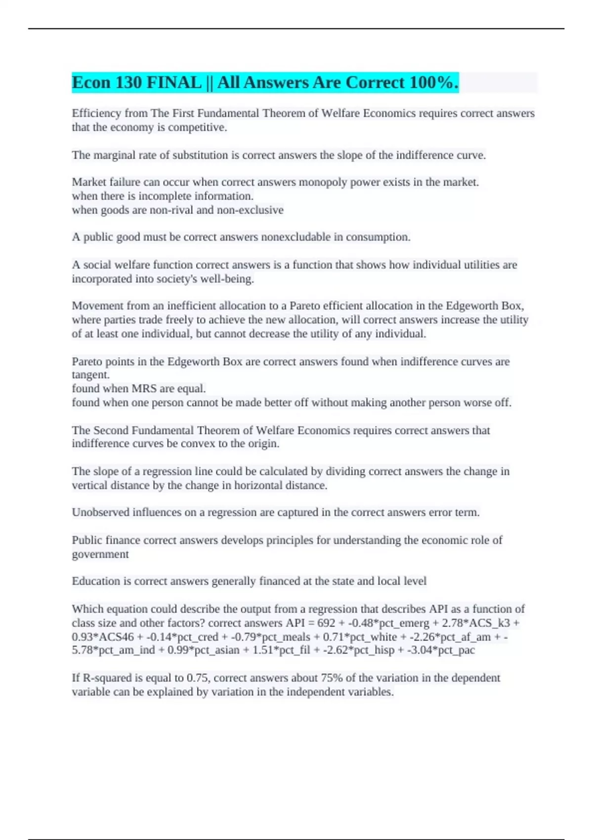 Econ 130 FINAL || All Answers Are Correct 100%.