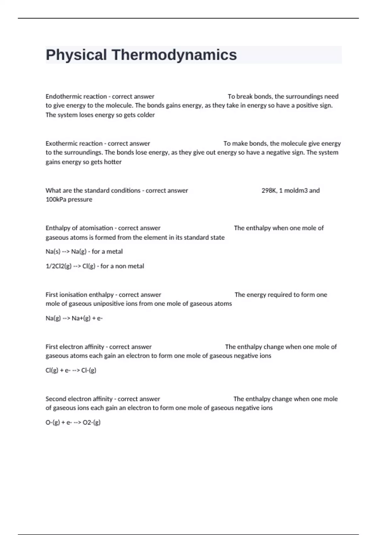 Enthalpy of atomisation - correct answer The enthalpy when one mole of