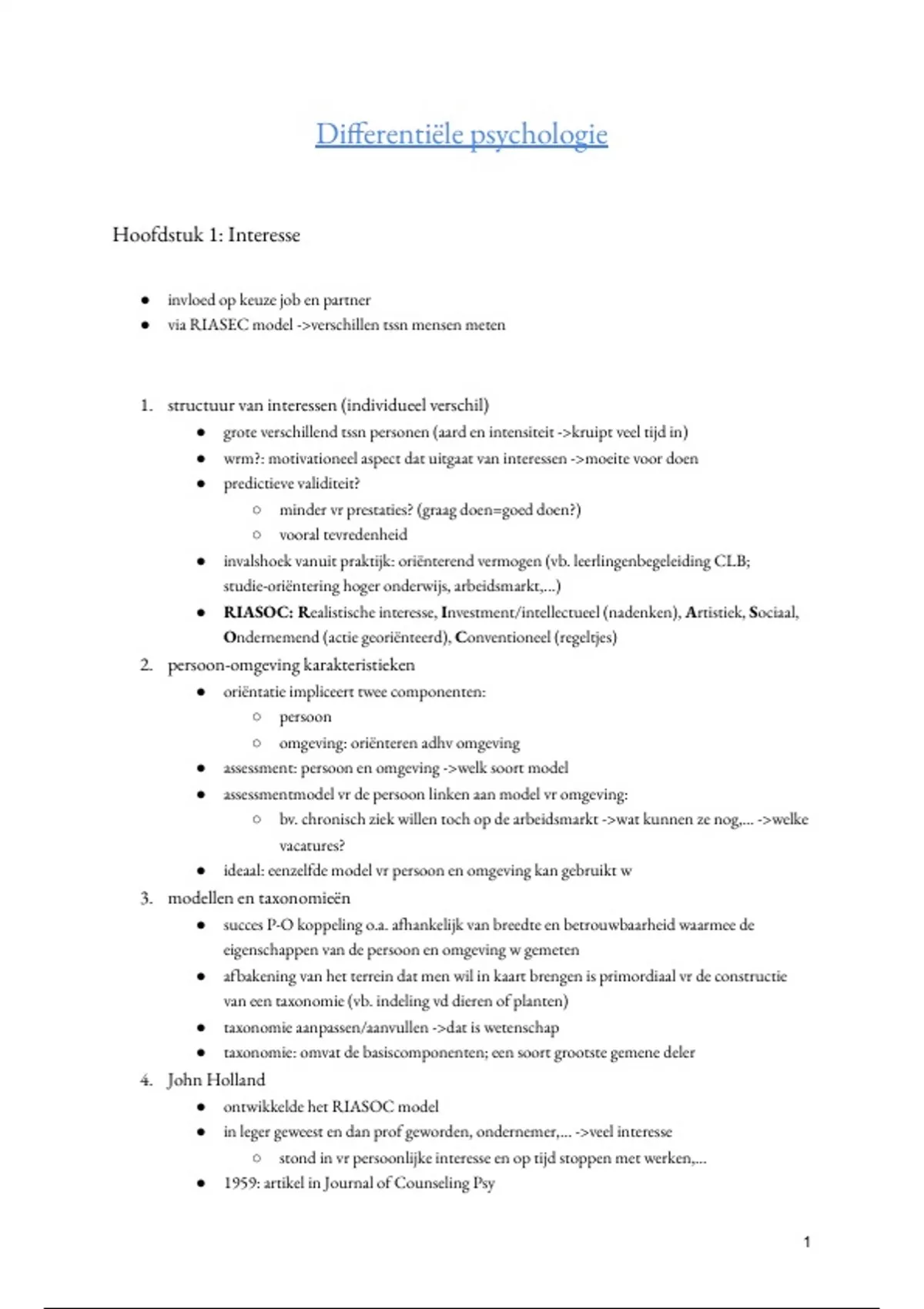 ● RIASOC: Realistische interesse, Investment/intellectueel (nadenken), Artistiek, Sociaal,