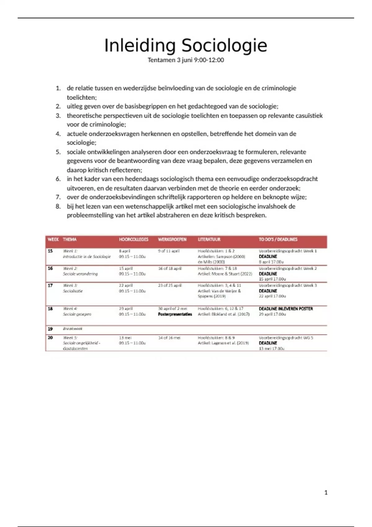 , Week 1 – introductie in de sociologie