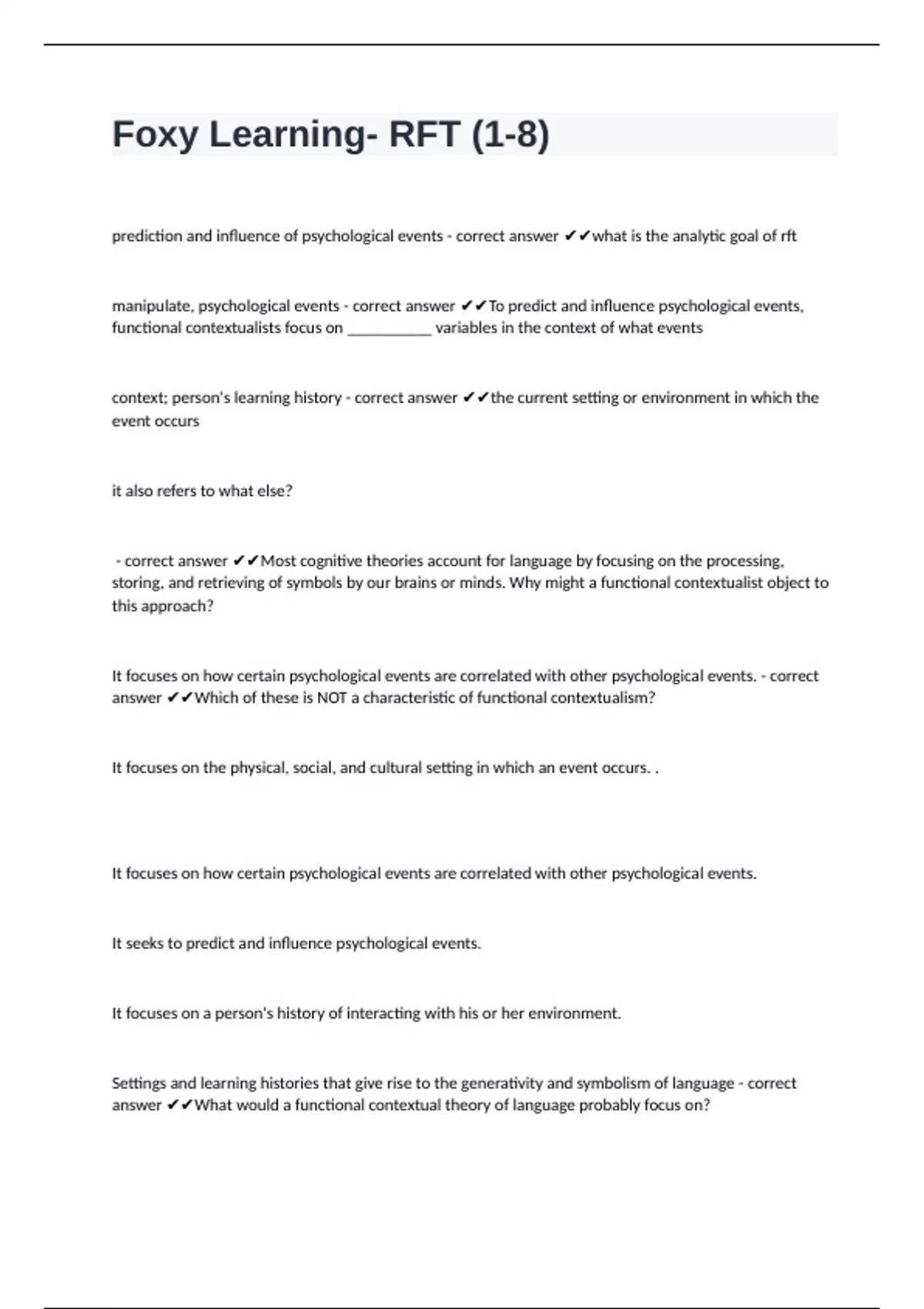 prediction and influence of psychological events - correct answer ✔✔what is the analytic goal of rft