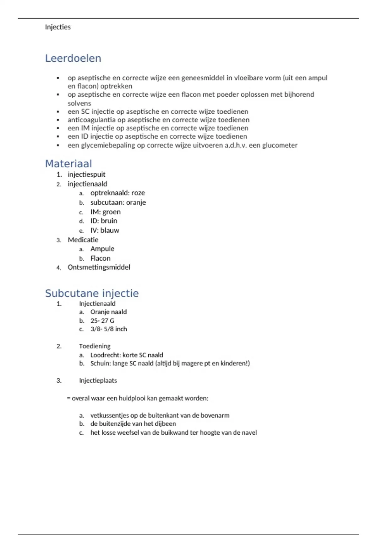 een ID injectie op aseptische en correcte wijze toedienen