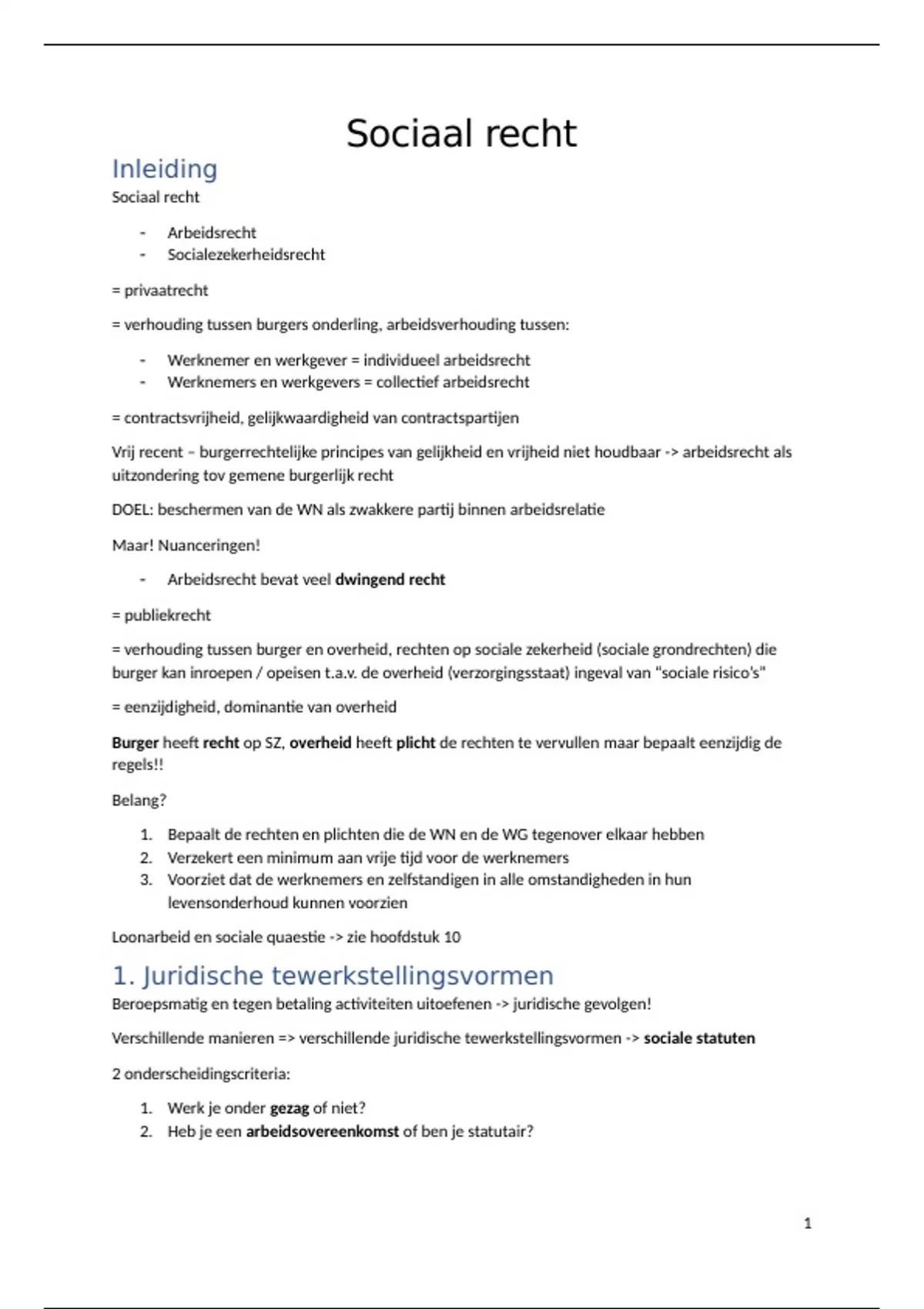 1. Juridische tewerkstellingsvormen