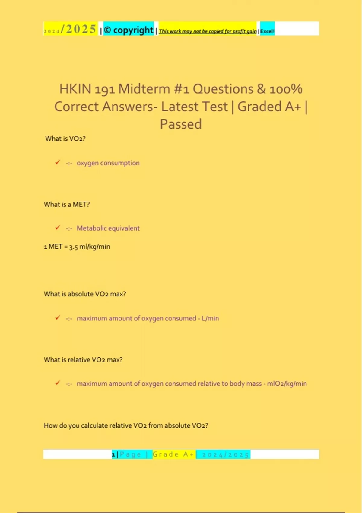 , 2024 /2025 | © copyright | This work may not be copied for profit gain | Excel!