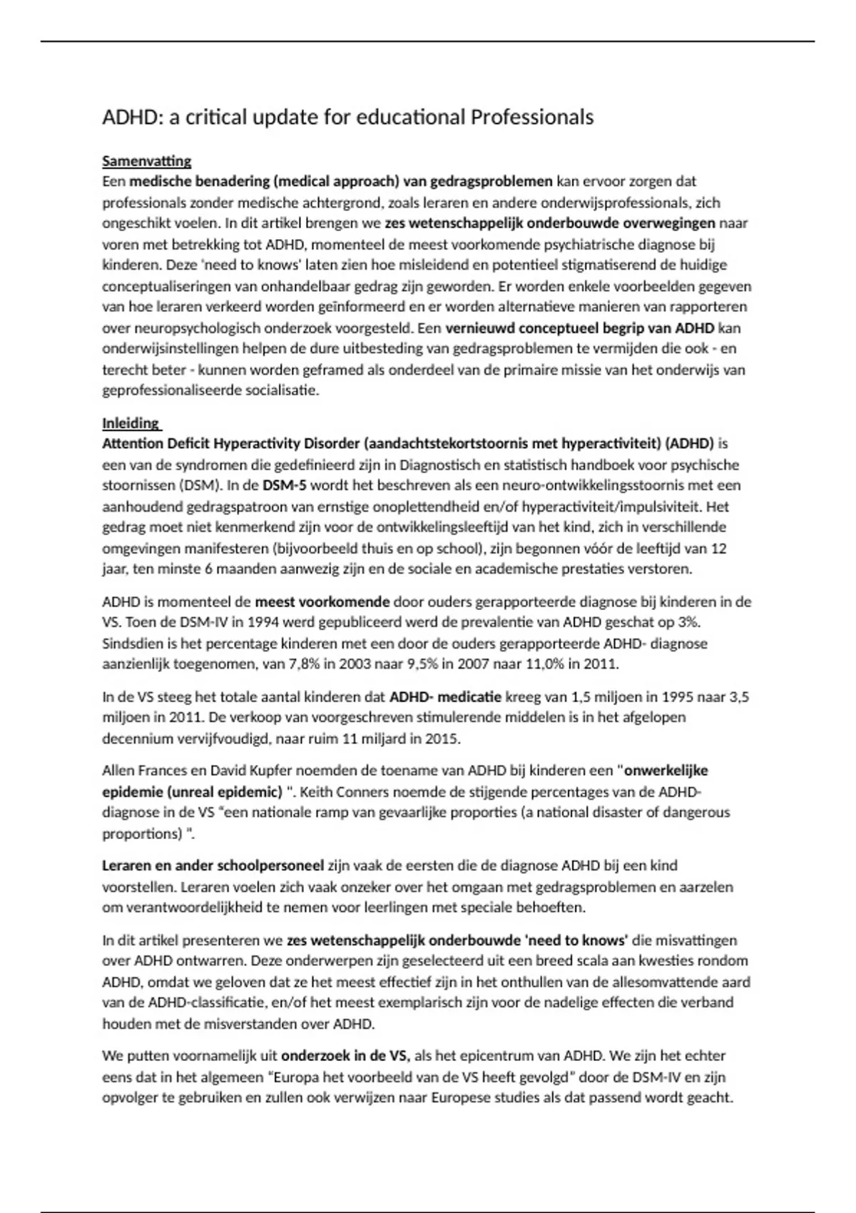 van de ADHD-classificatie, en/of het meest exemplarisch zijn voor de nadelige effecten die verband