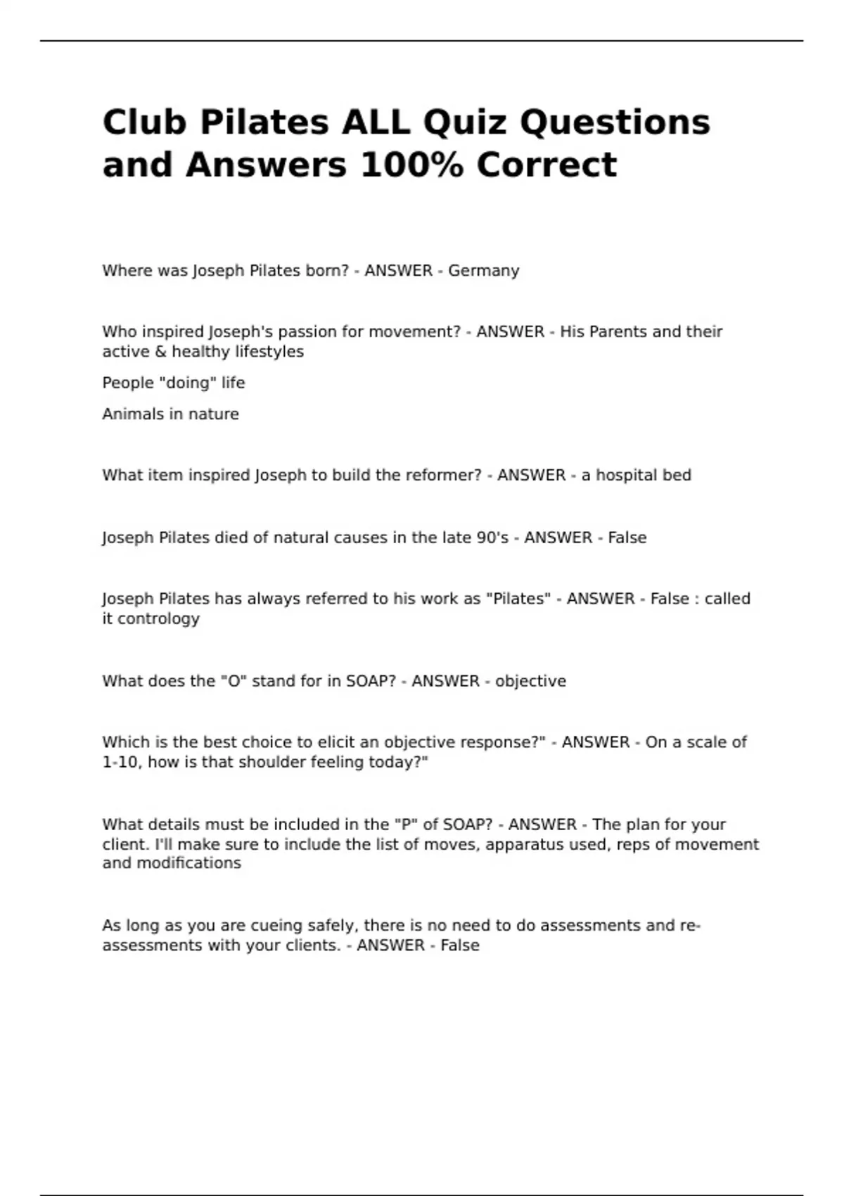 Joseph Pilates has always referred to his work as "Pilates" - ANSWER - False : called