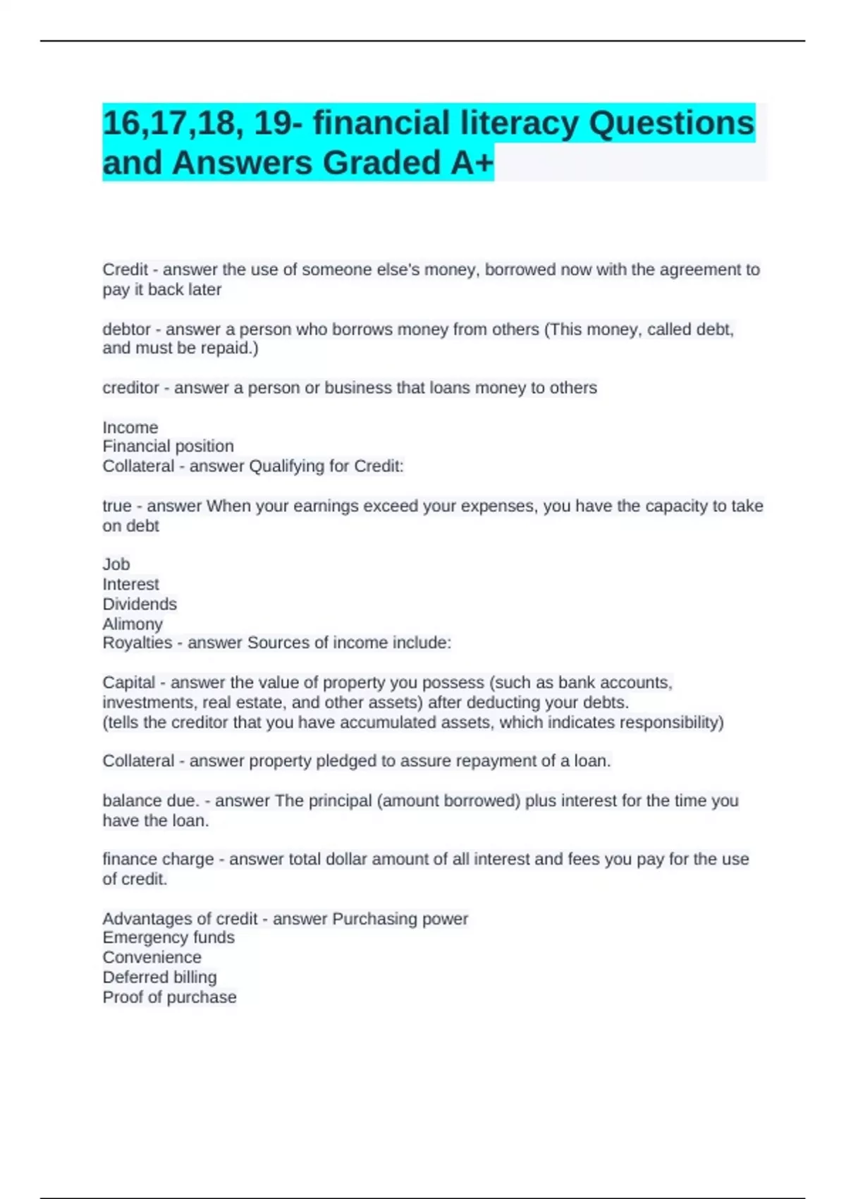 Credit - answer the use of someone else's money, borrowed now with the agreement to