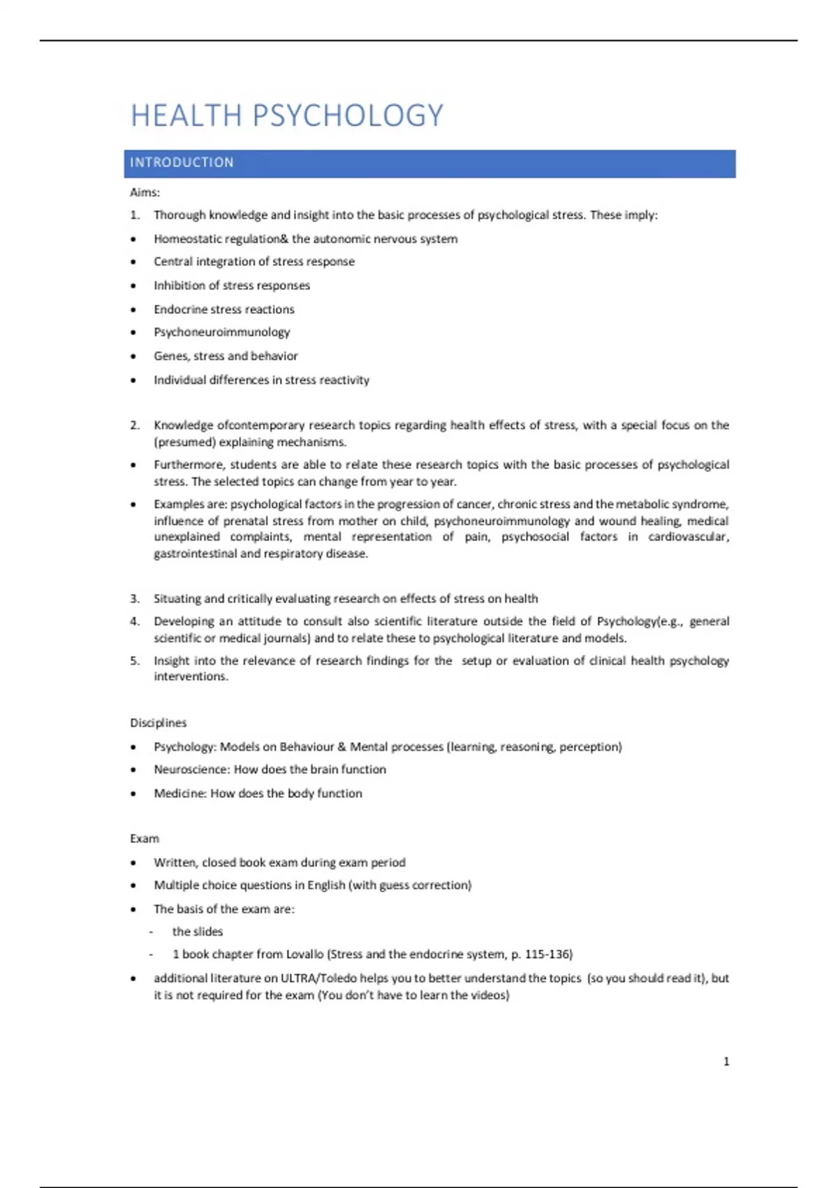 A comprehensive course text based on the lecture notes for Health Psychology Part 2 by von Leupoldt Andreas. This document includes all the information from the slides, as well as additional notes from the lectures. It is highly organized with a clear table of contents (which you can find for free in another document, so the sample pages provide a clear example of my notes). This complete resource covers all the essential material, consolidating everything you need into one document.