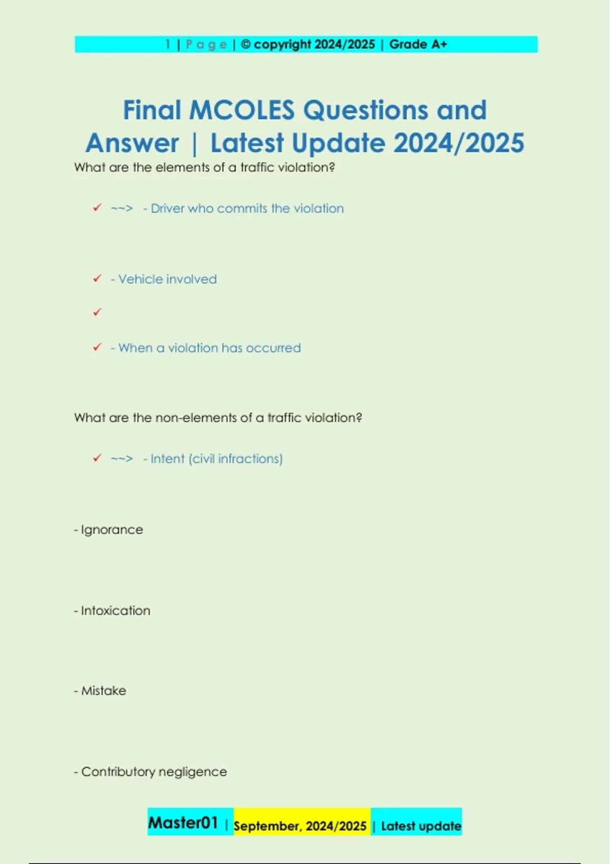 What are the non-elements of a traffic violation?