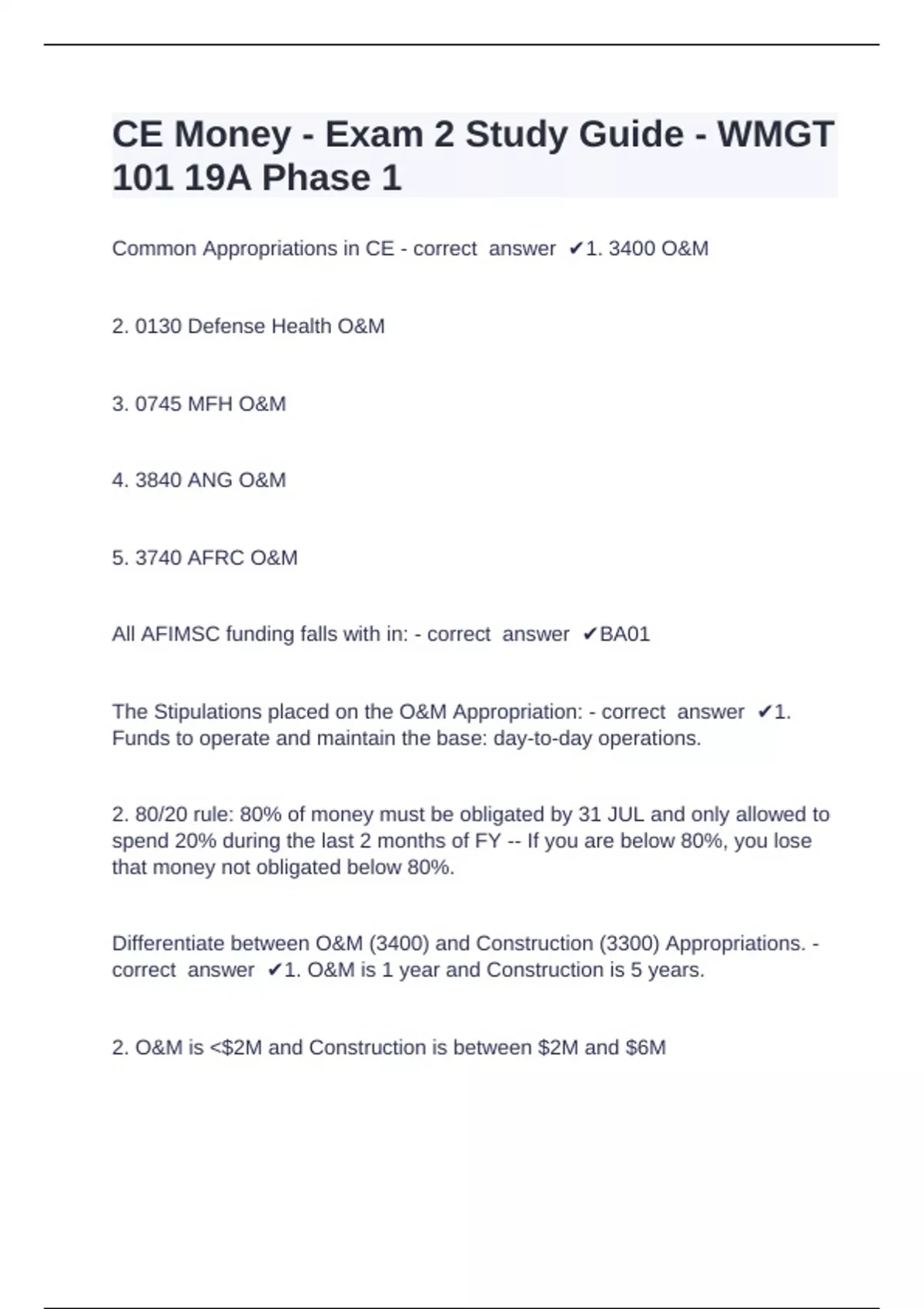 Common Appropriations in CE - correct answer ✔1. 3400 O&M