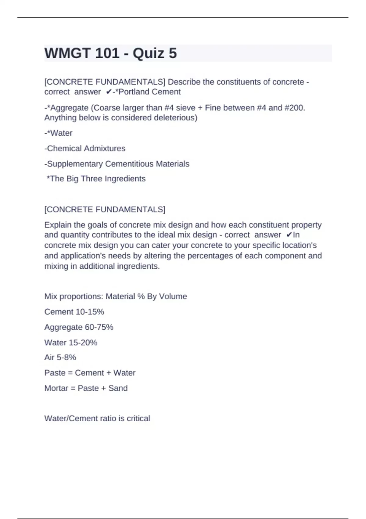 and quantity contributes to the ideal mix design - correct answer ✔In