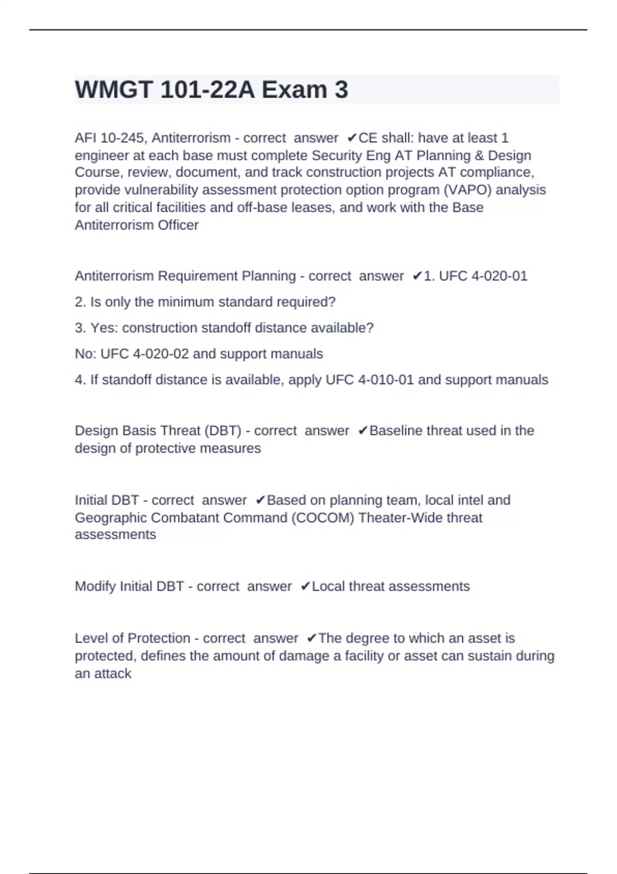 UFC 4-010-01 - correct answer ✔DoD minimum antiterrorism standards for