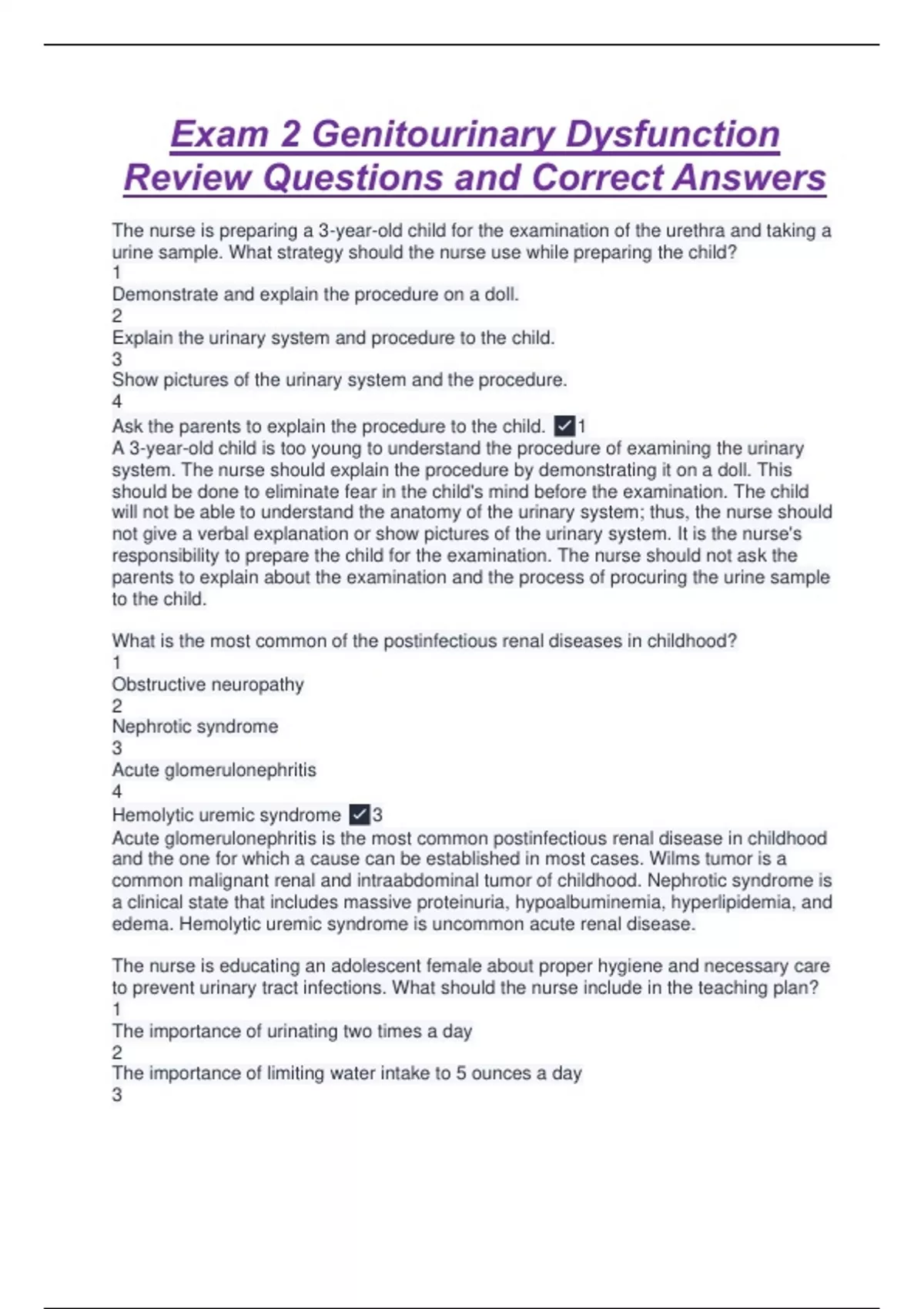 not give a verbal explanation or show pictures of the urinary system. It is the nurse's