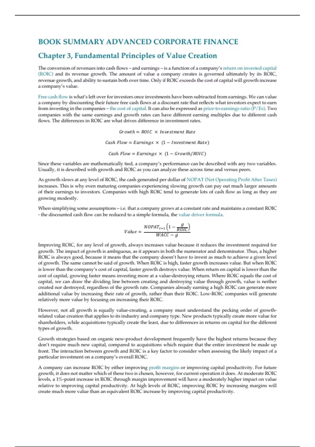 This is a book Summary for the required readings of the book Valuation by McKinsey for the mastercourse Advanced Corporate Finance at the VU.