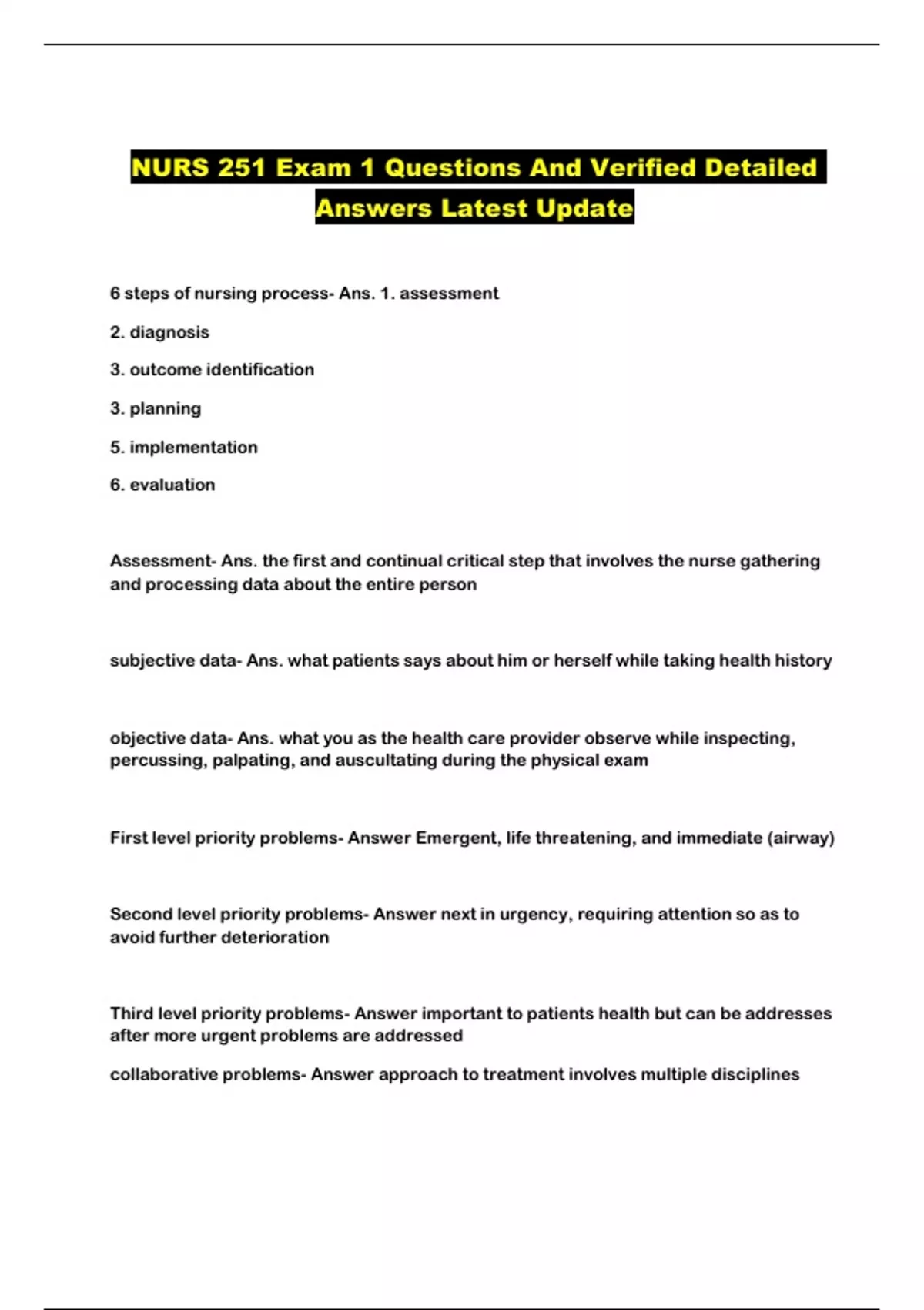 NURS 251 Exam 1 Questions And Verified Detailed
