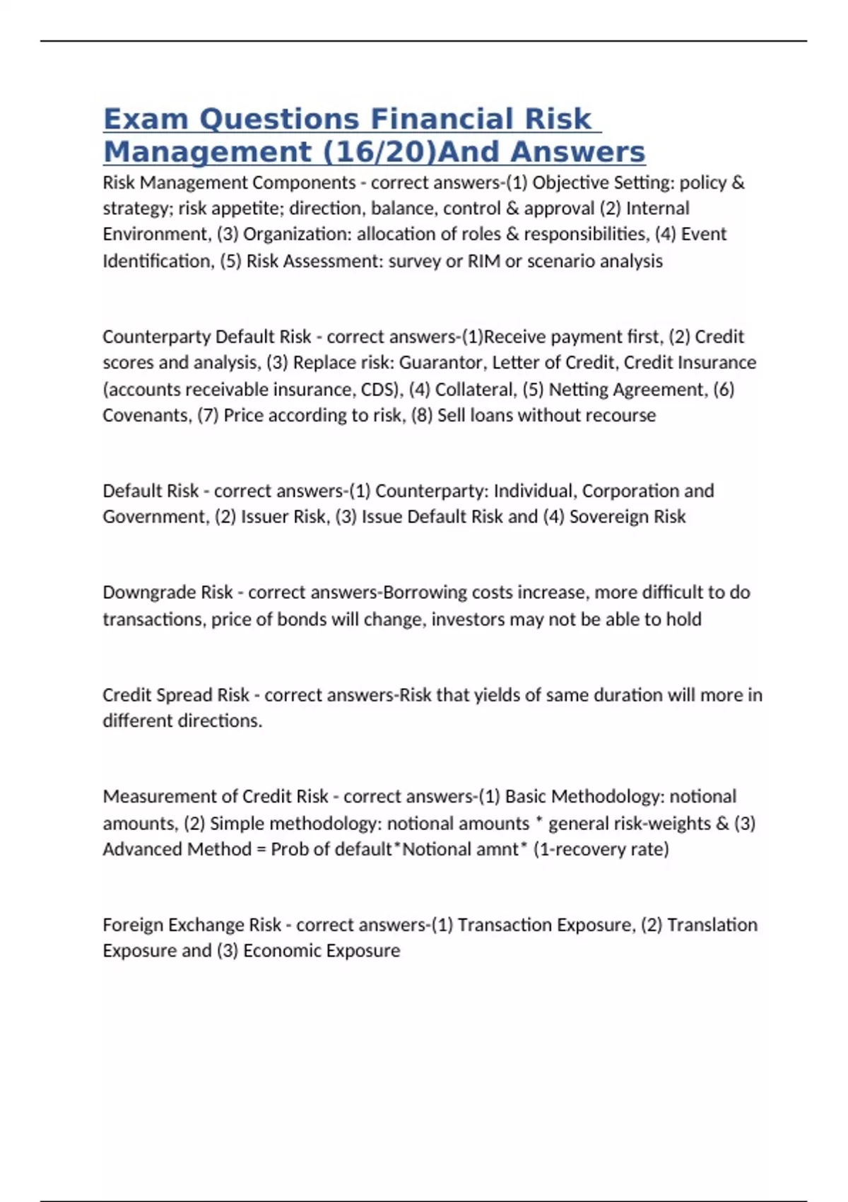 Default Risk - correct answers-(1) Counterparty: Individual, Corporation and