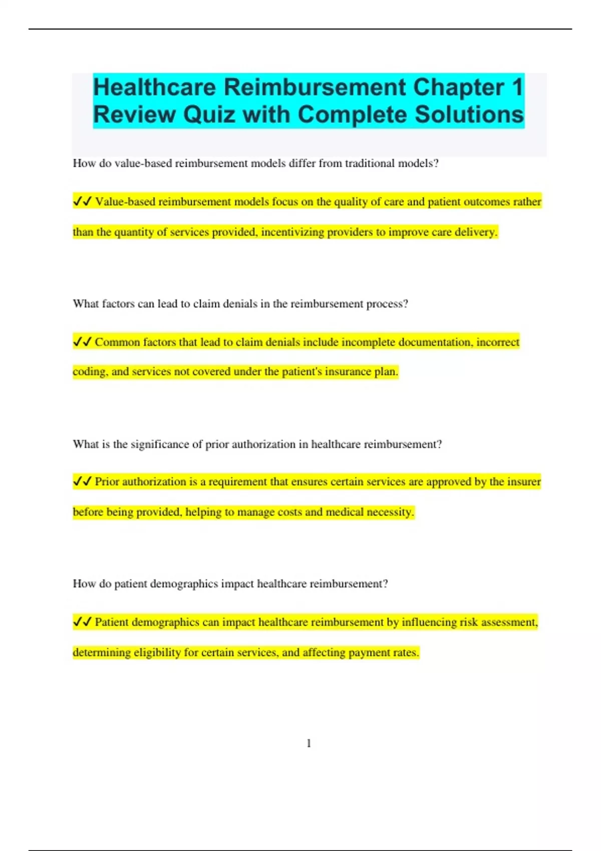 ✔✔ Value-based reimbursement models focus on the quality of care and patient outcomes rather