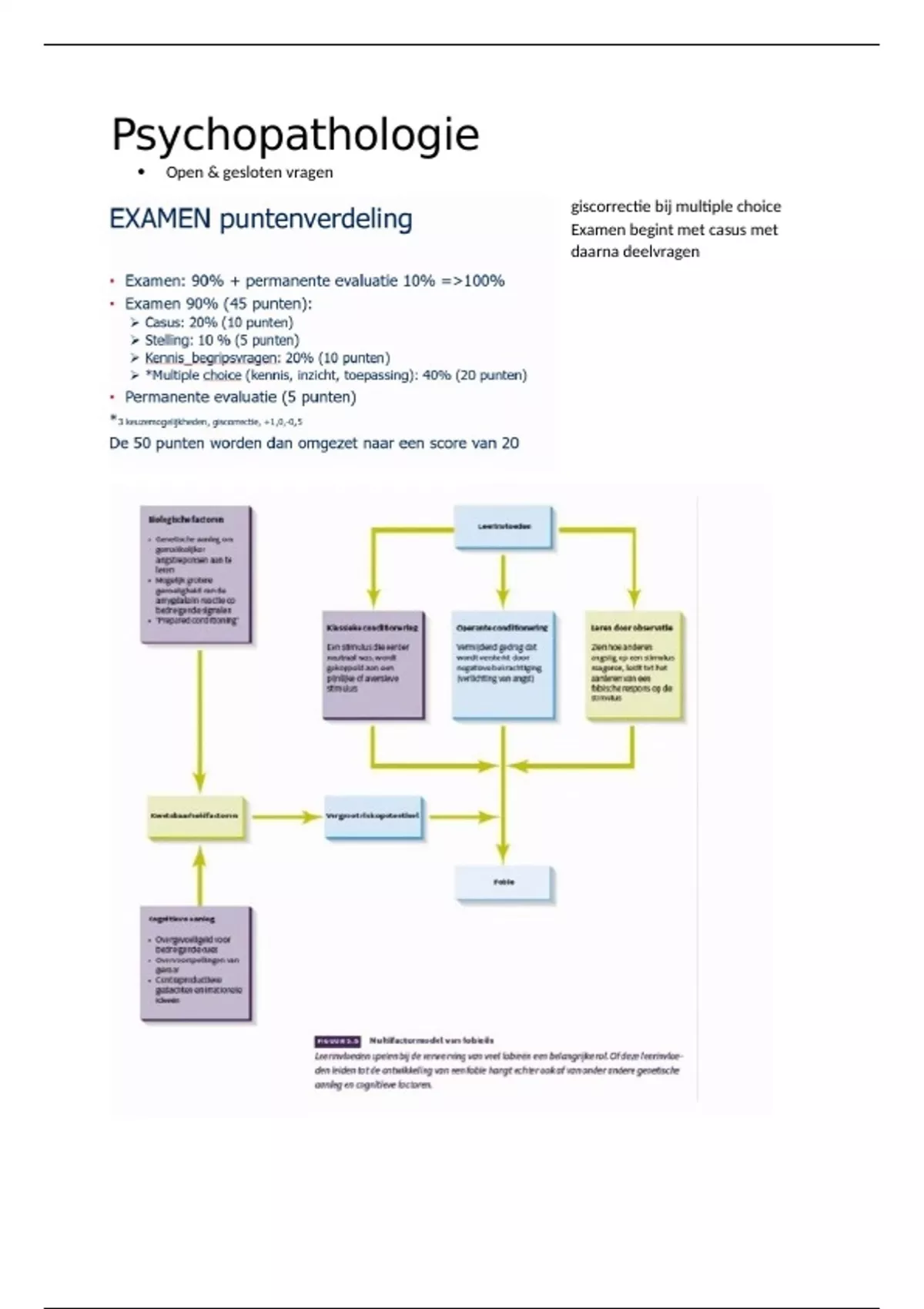 Samenvatting van 2 pagina's voor het vak Psychopathologie aan de UCLL (Samenvatting lessen)