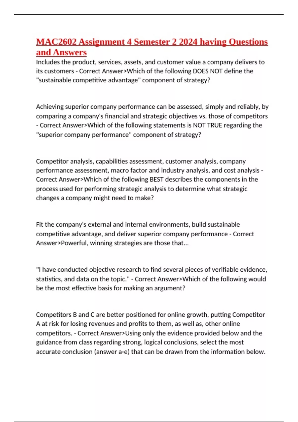 competitors. - Correct Answer>Using only the evidence provided below and the