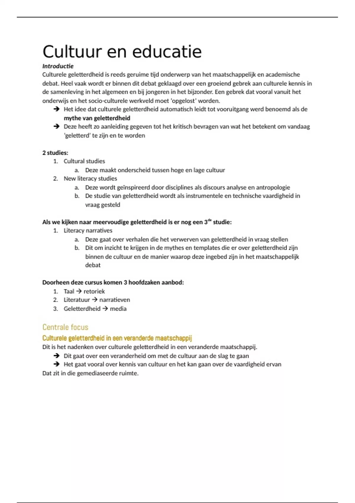 Samenvatting van zowel de syllabus als de lessen cultuur en educatie.