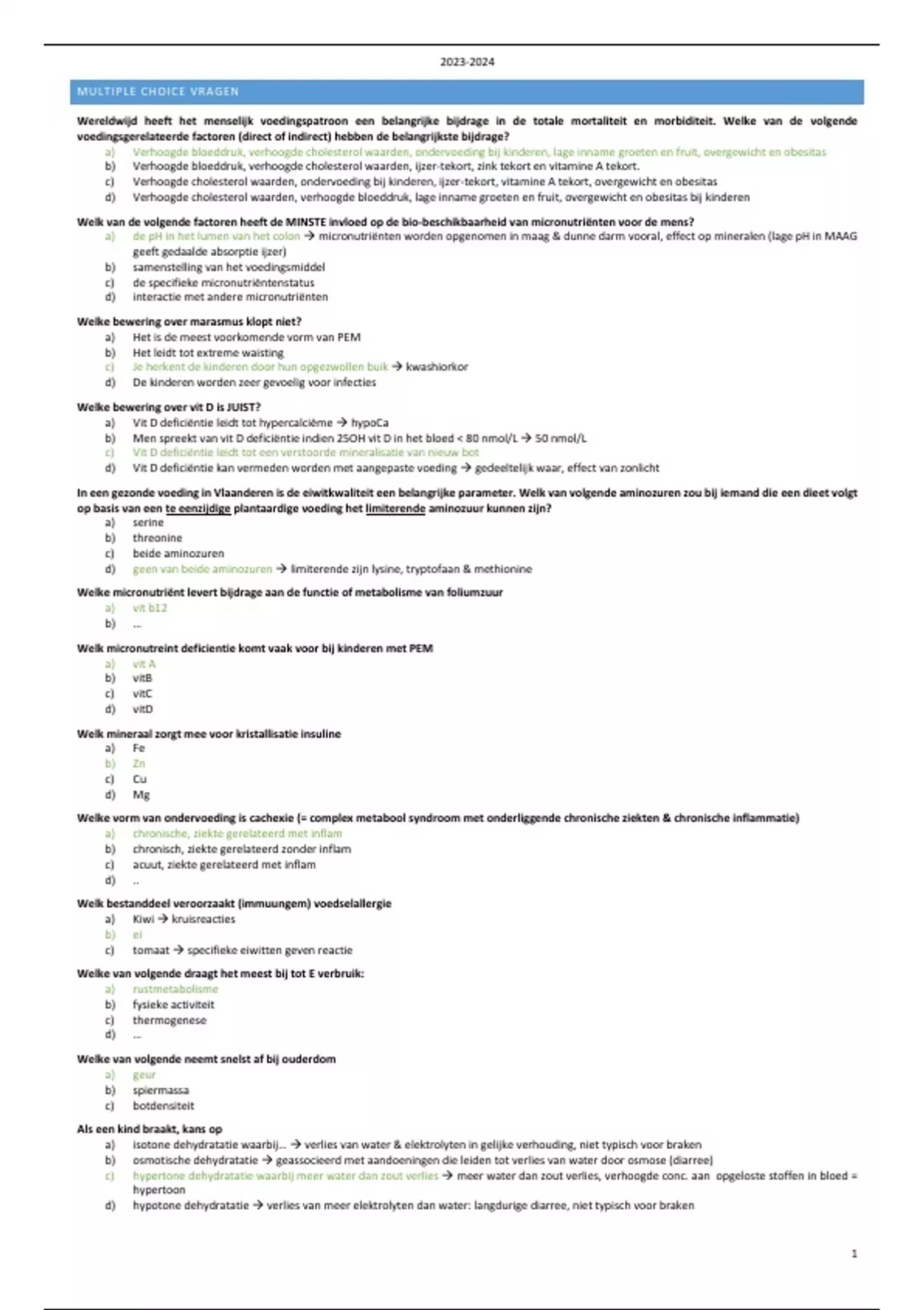 d) Vit D deficiëntie kan vermeden worden met aangepaste voeding → gedeeltelijk waar, effect van zonlicht