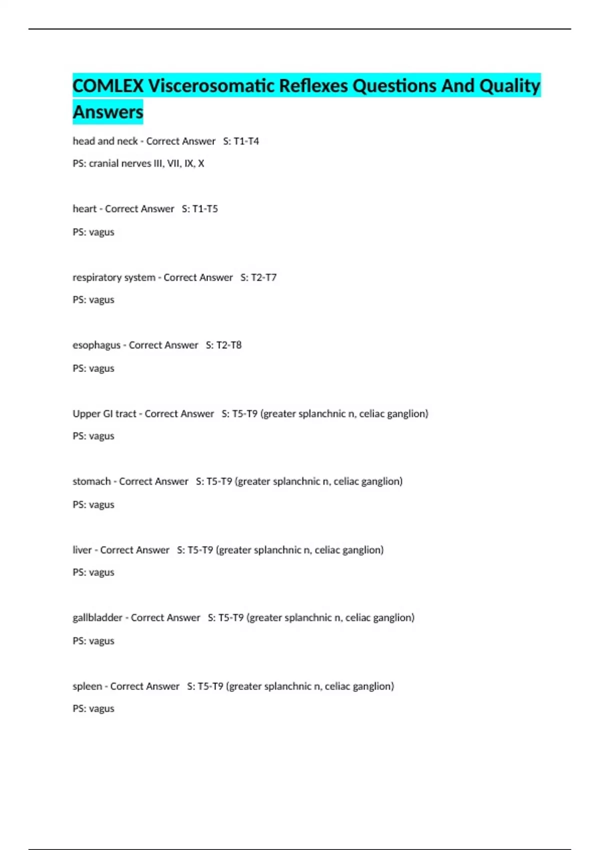 spleen - Correct Answer S: T5-T9 (greater splanchnic n, celiac ganglion)