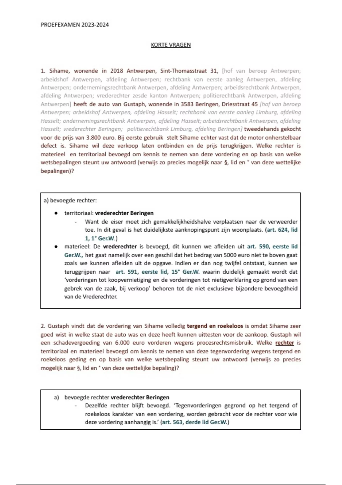● materieel: De vrederechter is bevoegd, dit kunnen we afleiden uit art. 590, eerste lid